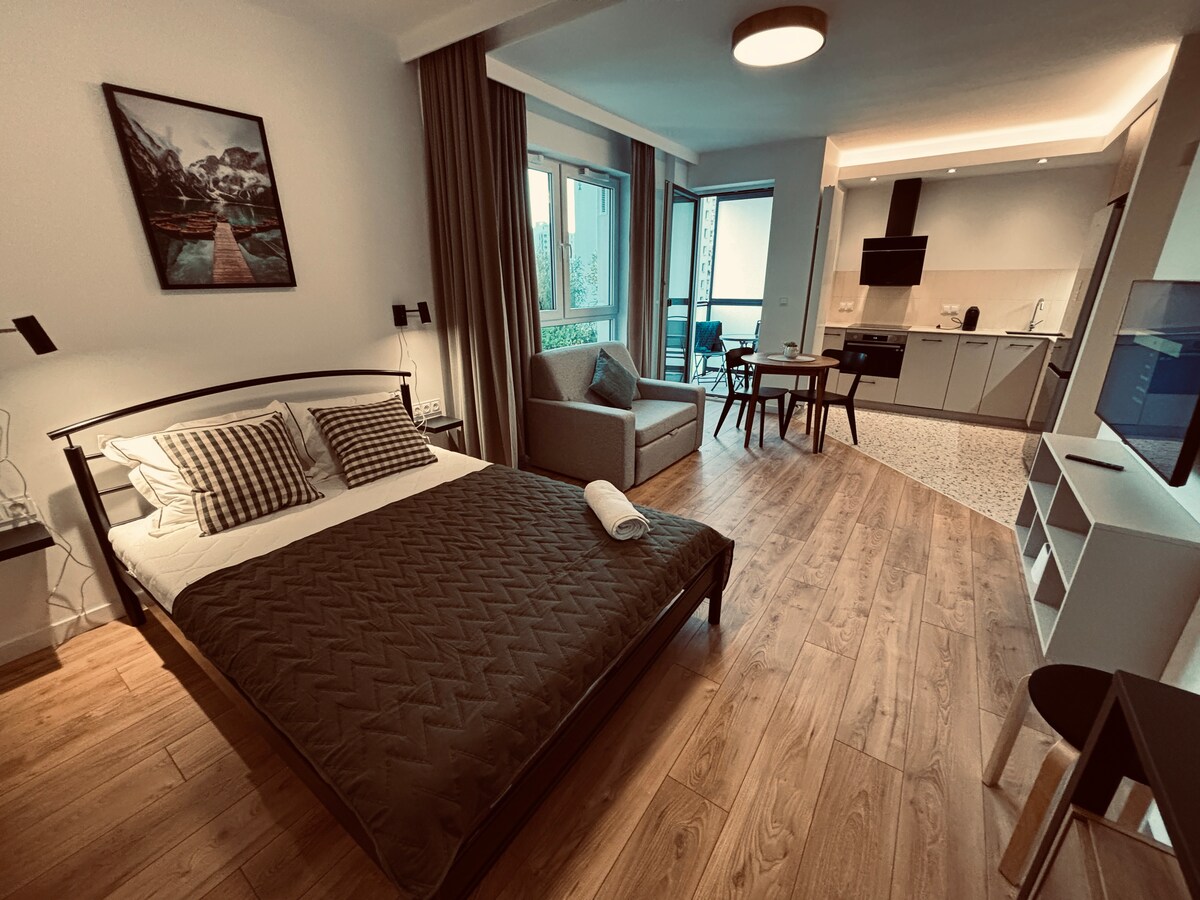 Το διαμέρισμα στην οδό Kuflewskiej 6 στη Βαρσοβία είναι ένα νεόκτιστο σύγχρονο κτίριο με χώρο στάθμευσης και βεράντα, που βρίσκεται σε κοντινή απόσταση από τον σταθμό του μετρό Trocka. Δίπλα στο κτίριο υπάρχουν δύο σταθμοί φόρτισης ηλεκτρικών οχημάτων. EV. Επιπλέον, το κτίριο προσφέρει άνετο χώρο στάθμευσης και τη δυνατότητα χαλάρωσης. Ιδανική πρόταση για όσους αναζητούν άνετη και βολική διαμονή στην πρωτεύουσα. Smart TV.