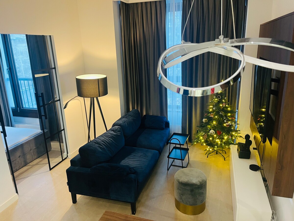 Ένα άνετο διαμέρισμα ενός υπνοδωματίου που βρίσκεται στο κέντρο του Mokotów - είναι καινούριο, πλήρως επιπλωμένο, εξοπλισμένο με όλα όσα μπορεί να χρειαστείτε κατά τη διάρκεια της διαμονής σας. Υπόγειο γκαράζ, έξυπνη τηλεόραση και ίντερνετ υψηλής ταχύτητας, πλήρως εξοπλισμένη, λειτουργική κουζίνα και βασικά προϊόντα υγιεινής διαθέσιμα για δική σας διευκόλυνση. Σταθμός φόρτισης για ηλεκτρικά οχήματα. Γυμναστήριο, σάουνα, ποδήλατα, ενοικίαση ηλεκτρικού αυτοκινήτου, βεράντα στην οροφή του κτιρίου στη διάθεσή σας.
