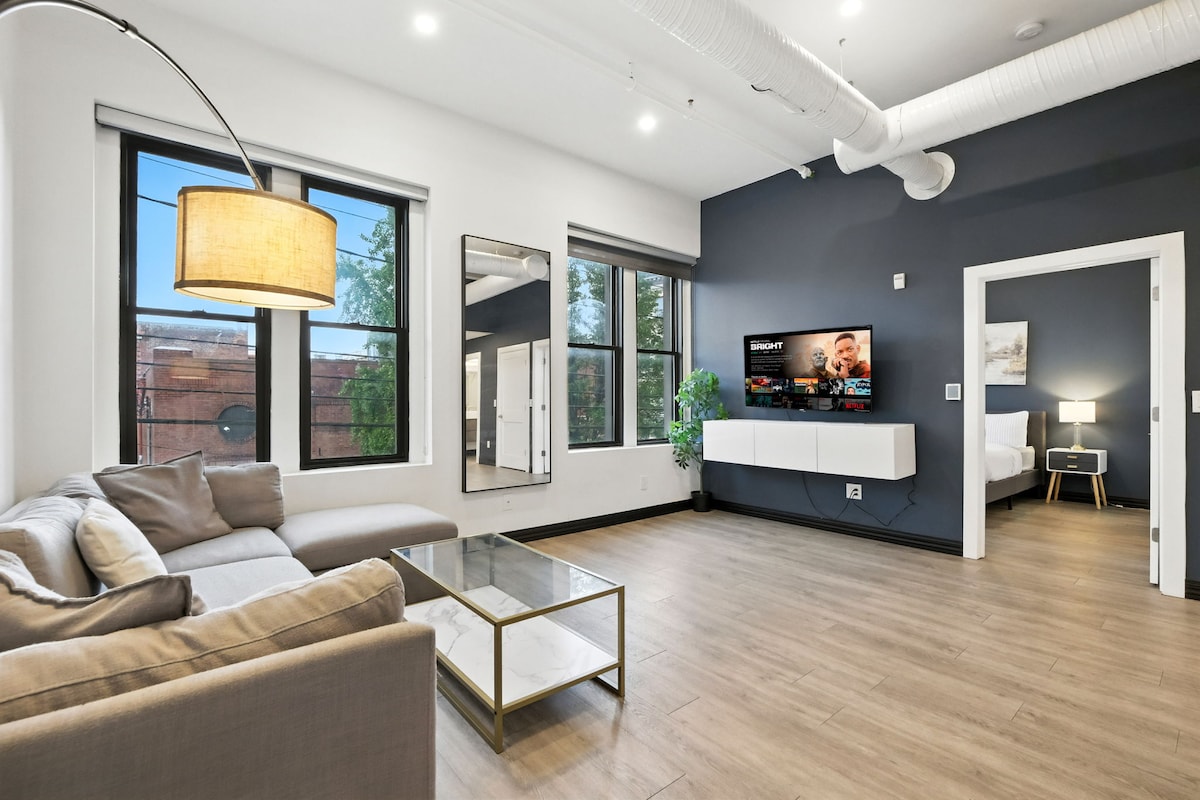 "Πολυτελές και ευρύχωρο" Αυτό το ρετιρέ 1.000 τ.μ. 2 μπάνιων 1 κρεβατιού μετατράπηκε πρόσφατα από παλιό σχολείο. Απολαύστε τη γοητεία με τη σύγχρονη άνεση. Το κύριο επίπεδο διαθέτει πλήρες μπάνιο, γραφείο, μπαρ για πρωινό, σαλόνι με προσαρμοσμένο τμήμα, Apple TV και ΥΠΈΡΟΧΗ θέα από το υπερμεγέθες παράθυρο. Στον επάνω όροφο θα βρείτε το υπνοδωμάτιο με υπέρδιπλο κρεβάτι και ιδιωτικό μπάνιο. -Amenities include: In-unit W/D, Elevator, Gym, Rooftop Deck, Billiards, BBall Court, & Auditorium Lounge as seen on CNBC 's Bowtie High