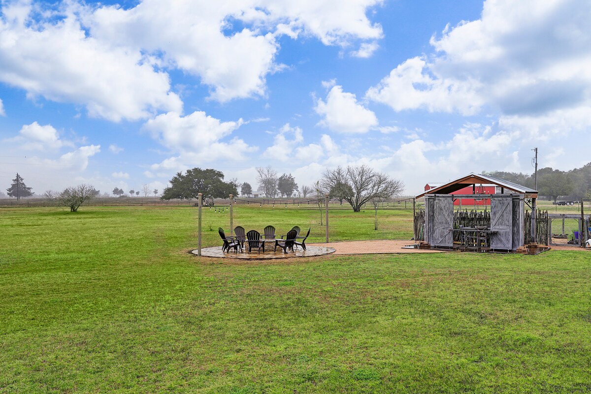 Ιδιωτική πολυτελής σουίτα 10 λεπτά από το Round Top, Τέξας. Απολαύστε μια πλημμύρα φυσικού φωτός, εκπληκτική θέα και λίγη ηρεμία και ησυχία σε αυτόν τον εκλεκτικό χώρο που έχει σχεδιαστεί με γνώμονα την άνεση των επισκεπτών. Αυτή η ιδιωτική σουίτα προσφέρει στους επισκέπτες μια χαλαρωτική απόδραση στην εξοχή, μακριά από την κίνηση που προκαλεί άγχος και την αιθαλομίχλη που πνίγει τους ορίζοντες. Περάστε τα βράδια σας αγκαλιασμένοι σε μια φωτιά και ακούστε τα κογιότ να ουρλιάζουν καθώς ατενίζετε τον ουρανό γεμάτο διαμάντια. Μείνετε για λίγο και δείτε τι σημαίνει να ζεις την εξοχική ζωή.