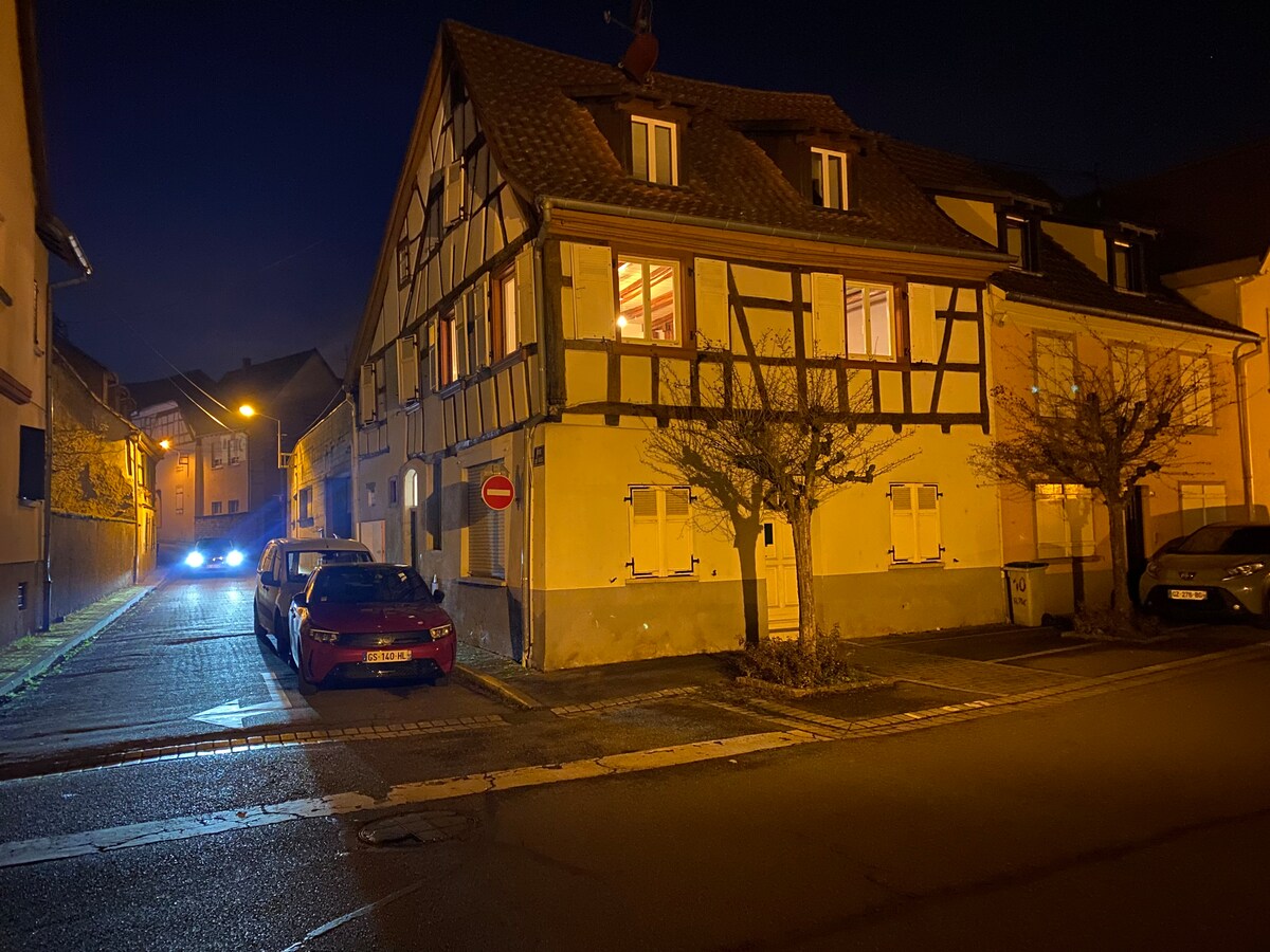 ένα διαμέρισμα 75 τ.μ. με εξοπλισμένη κουζίνα, πολύ ευρύχωρο με πολύ σύγχρονη διακόσμηση που συνδυάζει το μοντέρνο και το παλιό. Μπορούμε να φιλοξενήσουμε μέχρι 4 άτομα αυτό το κατάλυμα είναι ιδανικό για οικογένειες ή μικρές ομάδες και άτομα που ταξιδεύουν για επαγγελματικούς λόγους στον όροφο πάνω από ένα πολύ ήσυχο εστιατόριο κοντά σε μια στάση λεωφορείου που συνδέεται με το Στρασβούργο που βρίσκεται 25 χλμ μακριά, κοντά στην αρχή της διαδρομής κρασιού κοντά στη Γερμανία καφές σοκολάτα τσάι, για πρωινό στη διάθεσή σας