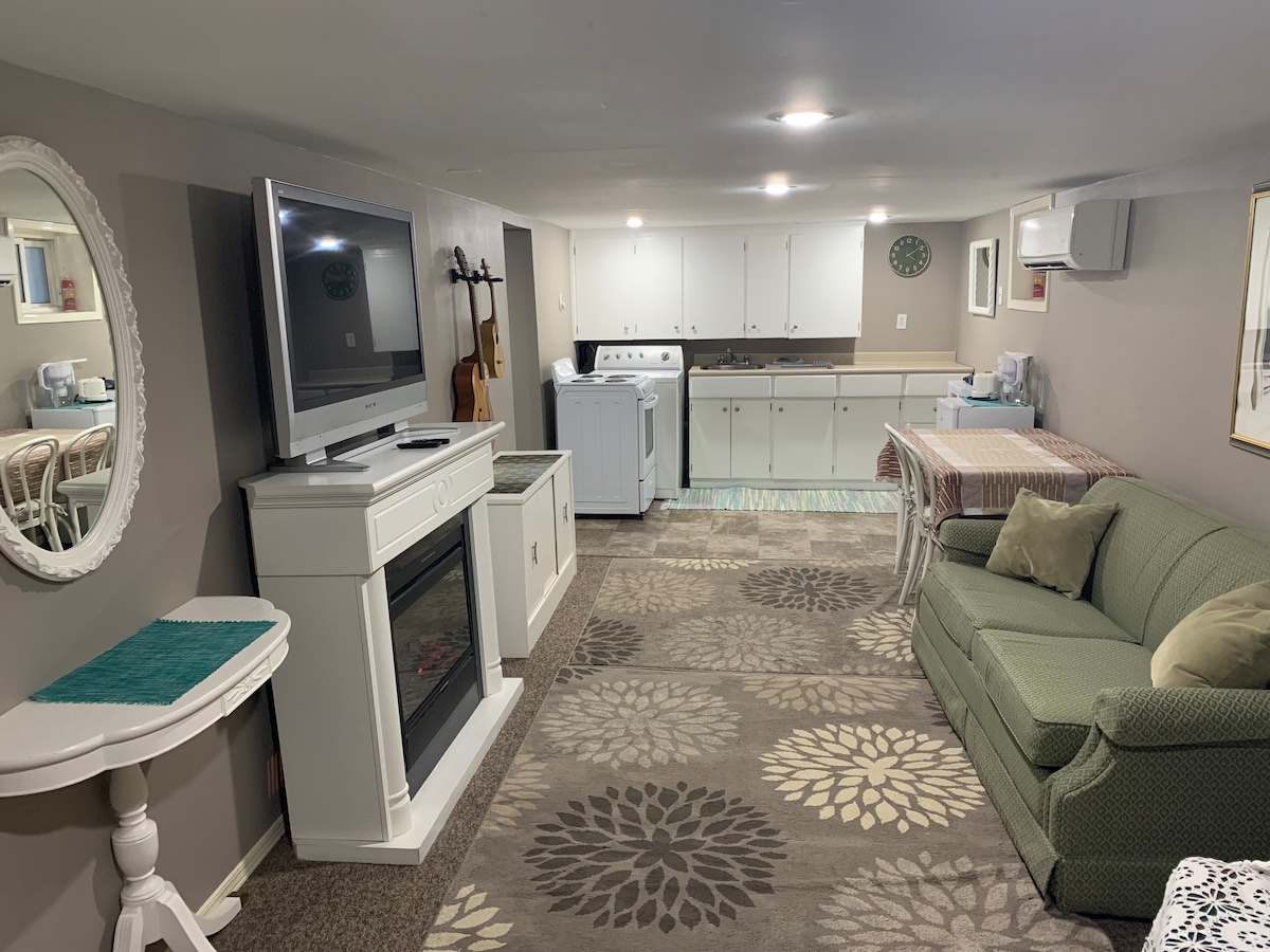 Ελάτε στο κομίκινο υπόγειο καταφύγιό μου με 1 υπνοδωμάτιο. Κοιμηθείτε ήσυχα στο κρεβάτι ημέρας και χαλαρώστε στο άνετο σαλόνι με έναν γωνιακό καναπέ-κρεβάτι. Οι επιλογές ψυχαγωγίας αφθονούν με μια έξυπνη τηλεόραση Roku 50" εξοπλισμένη με Netflix και ένα vintage στερεοφωνικό για τα αγαπημένα σας τραγούδια. Απολαύστε την πλήρως επιπλωμένη κουζίνα με πλυντήριο πιάτων. Ανανεωθείτε στο ιδιωτικό μπάνιο με 3 εξαρτήματα. Οι βολικές παροχές περιλαμβάνουν ιδιωτικό πλυντήριο ρούχων, ξεχωριστή είσοδο, ίντερνετ υψηλής ταχύτητας και δωρεάν χώρο στάθμευσης. Κάντε κράτηση τώρα για μια σύγχρονη και άνετη διαμονή!