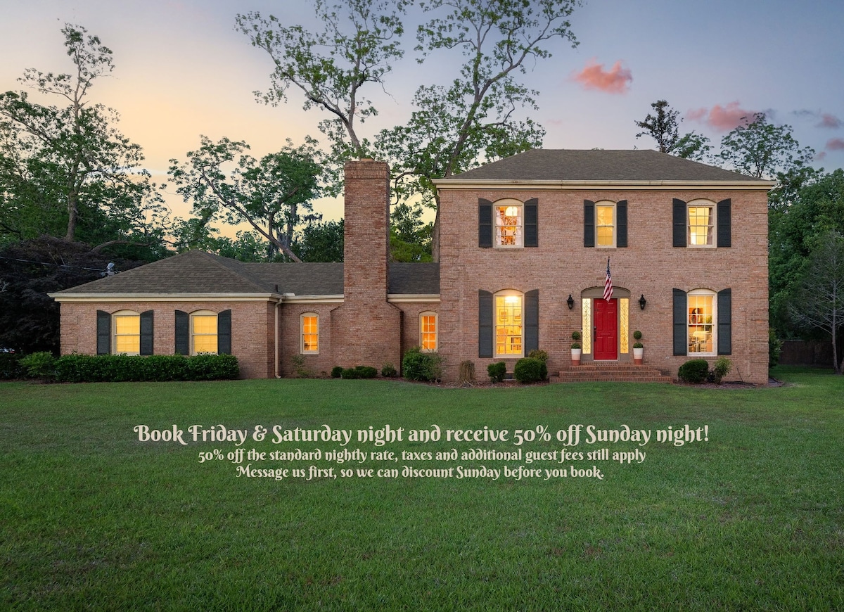 Καλώς ήρθατε στο ευρύχωρο σπίτι σας Southern Comfort και στην πύλη για τις περιπέτειες στο πάρκο Okefenokee. Προετοιμασία γεύματος σε πλήρως εξοπλισμένη κουζίνα νησιού με ηλεκτρικές συσκευές Whirlpool από ανοξείδωτο χάλυβα. Απολαύστε μια μεγάλη ιδιωτική πίσω αυλή έτοιμη για μπάρμπεκιου με μπρικέτες. Το σαλόνι έχει ένα υγρό μπαρ και ένα τραπέζι μπιλιάρδου. Η τραπεζαρία χωράει 8 άτομα μπροστά από το τζάκι. Η γειτονιά είναι διάσπαρτη με προπολεμική αρχιτεκτονική και πανύψηλα πεύκα. Είστε λίγα λεπτά από το κέντρο της πόλης.