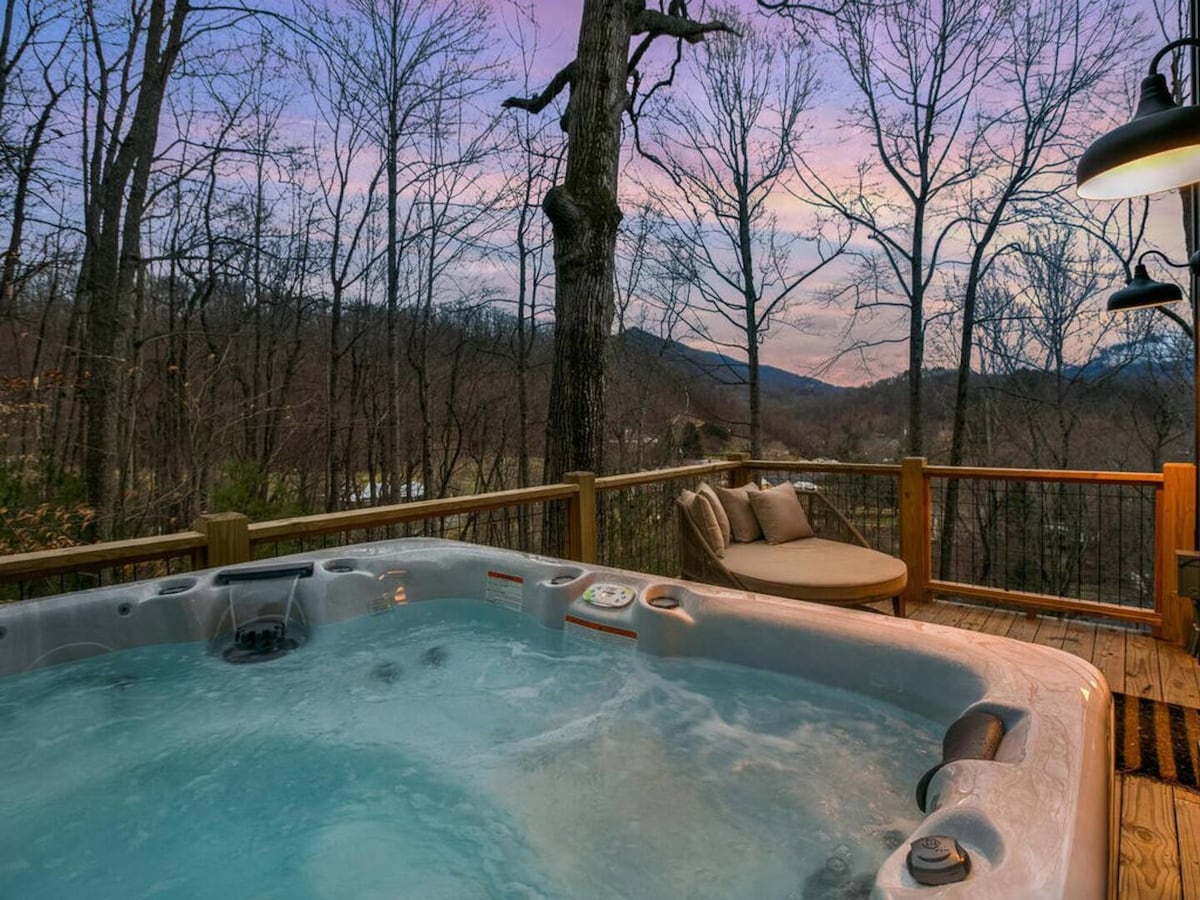 Μαγευτική θέα προς τα δυτικά σε ένα άνετο καταφύγιο, με εξωτερικό κρεβάτι αφρού μνήμης και ροκάδες. Ήσυχη απόδραση για να ξεκουραστείτε και να χαλαρώσετε μετά από μια μέρα γεμάτη εξερεύνηση, πεζοπορία, ψώνια ή επίσκεψη σε ένα από τα πολλά ζυθοποιεία της περιοχής μας. Πιείτε ένα ποτήρι κρασί στη βεράντα και απολαύστε τον αέρα του βουνού. 15 λεπτά από το κέντρο του Waynesville, 35 λεπτά από το Asheville. *1/26 ανακαίνιση ντους κύριου μπάνιου* *@3500ft= δρόμος με πολλές στροφές/απότομος δρόμος στο βουνό. * Περισσότερα στην ενότητα "Ο χώρος".