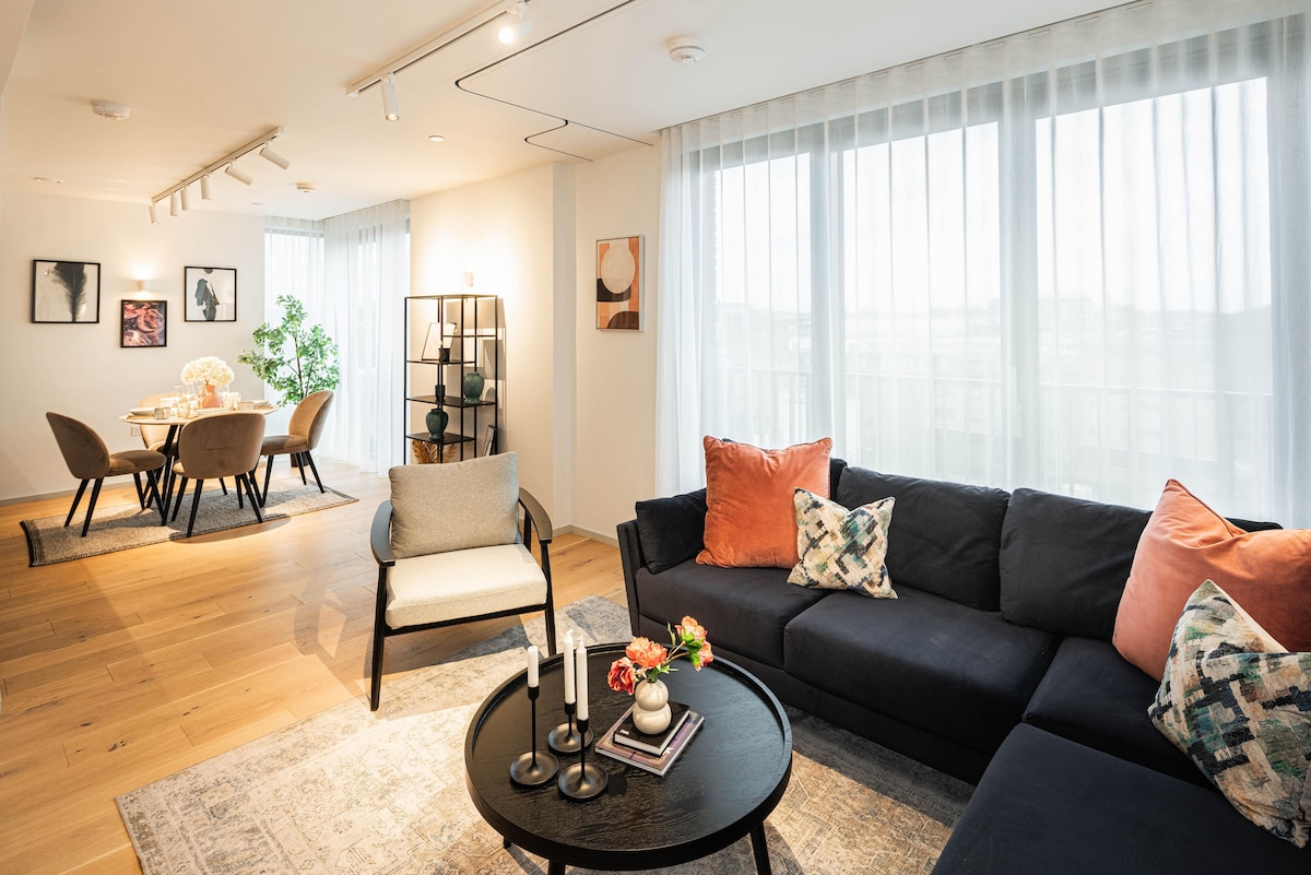 Το Urban Rest Battersea προσφέρει πολυτελή διαμερίσματα 1–3 υπνοδωματίων σε εξαιρετική τοποθεσία δίπλα στο ποτάμι. Απολαύστε παροχές σε στιλ ξενοδοχείου, όπως πισίνα στην ταράτσα, σαλόνια με θέα, γυμναστήρια, χώρους συνεργασίας και σπα για κατοικίδια. Κάθε διαμέρισμα διαθέτει μοντέρνο σχεδιασμό, έξυπνη οικιακή τεχνολογία, μεγάλα παράθυρα από το πάτωμα μέχρι την οροφή, ιδιωτικά μπαλκόνια και πολυτελείς συσκευές. Κοντά στον σταθμό Battersea Power, το Nine Elms προσφέρει ψώνια, φαγητό και γρήγορες συνδέσεις με την πόλη μέσα σε πράσινο.