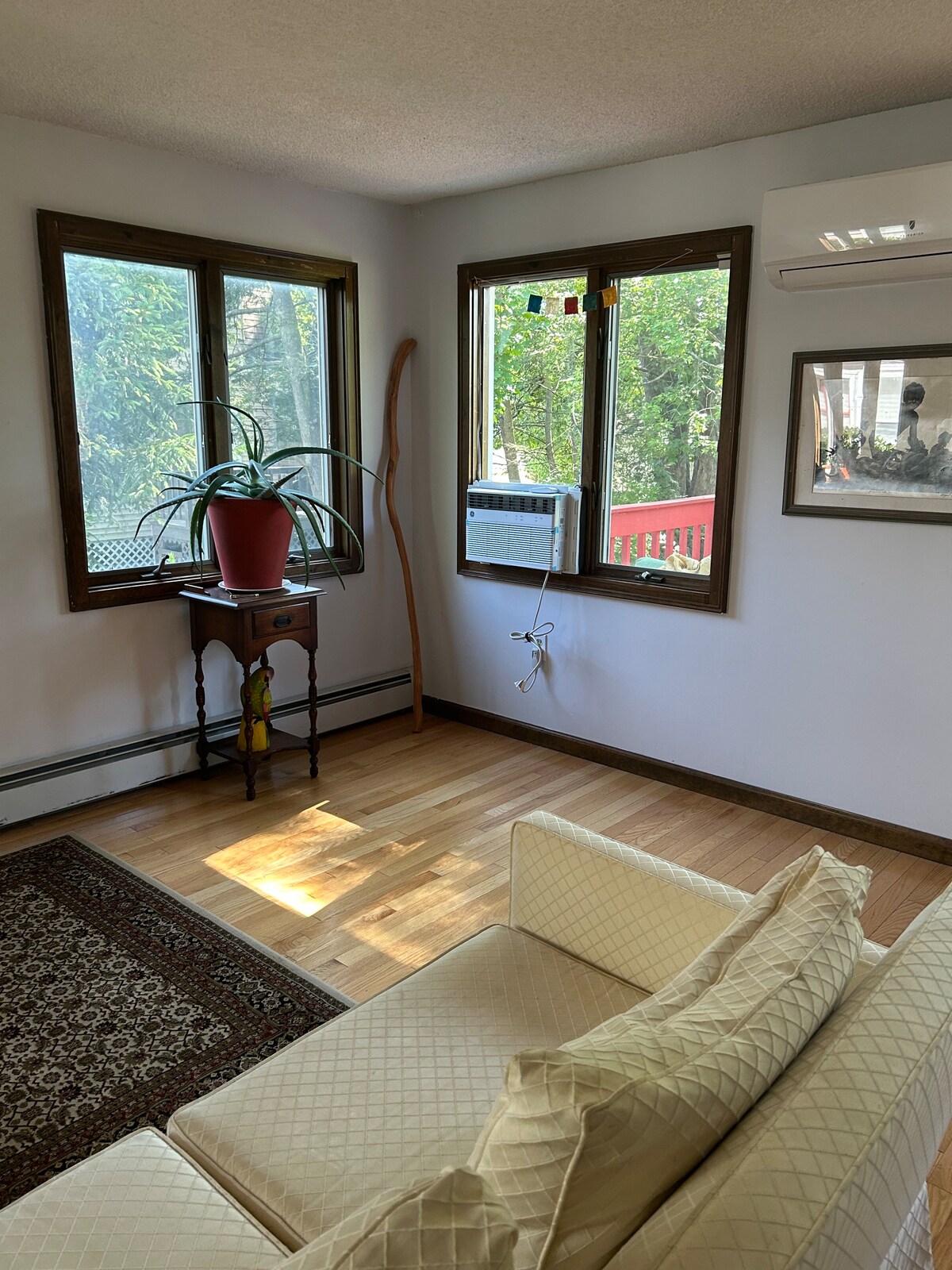 A private cozy suite for you! Better than a hotel or private room & less than an entire house. Pets welcome with no fees :) Generous discounts for medium- to long-term stays. Your guest suite includes newly furnished living room, apartment kitchenette, large bedroom with full bathroom. Despite many renovations, we kept the vintage & cozy charm. Keurig machine. Separate Wifi for remote work. Powered by solar! Less than 20 minutes to the airport and Hartford. No cost EV charger. No cleaning fees!