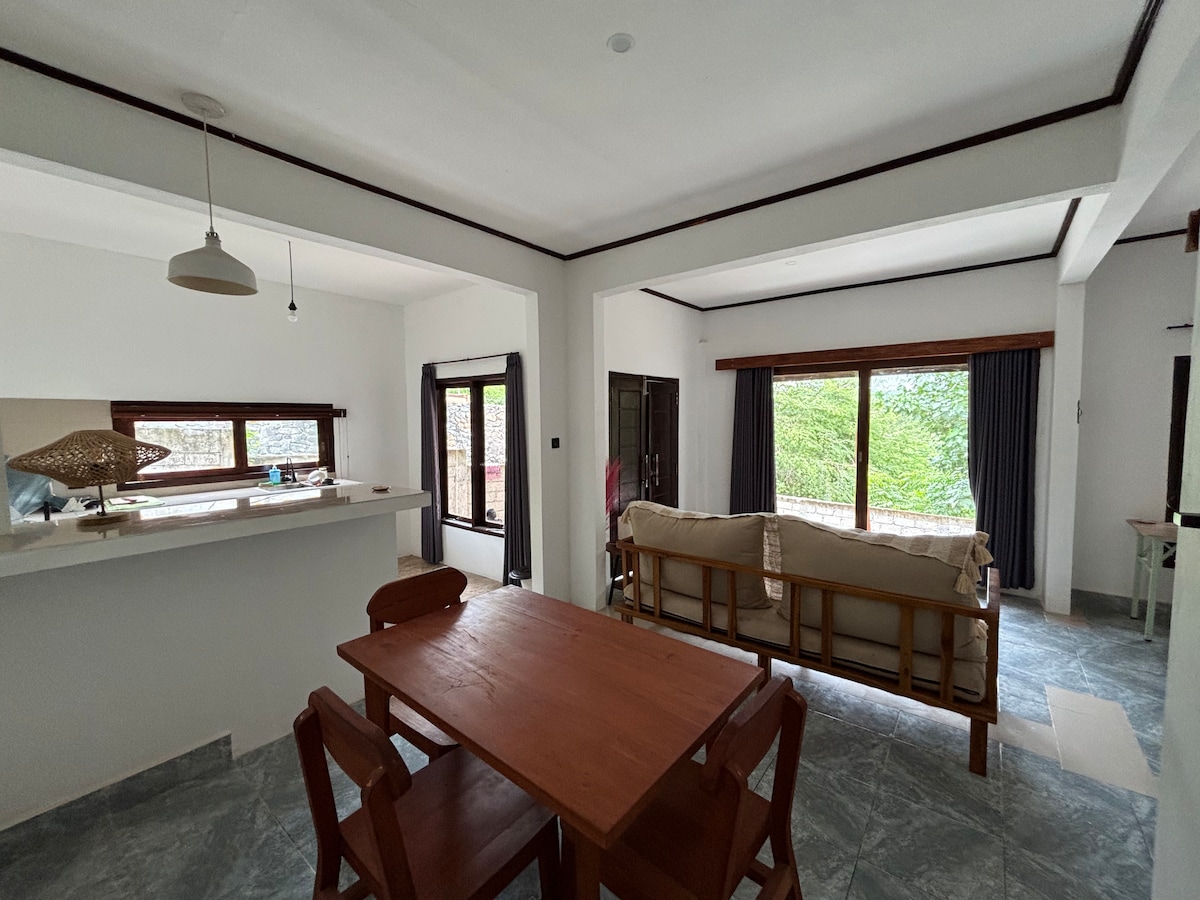 Central house in kuta lombok with green views. Is little bit on the high, but just 2 min motorbike from central and all the restaurants. Quiet area. The house is 1 room, with big closed living room, open kitchen and one toilet. You have different spots and tables for working with the computer inside the house. There is AC on the room and also on the living room. You have a sofa with views to the mountain. Good spot for going walking to every place if you don’t want motorbike.