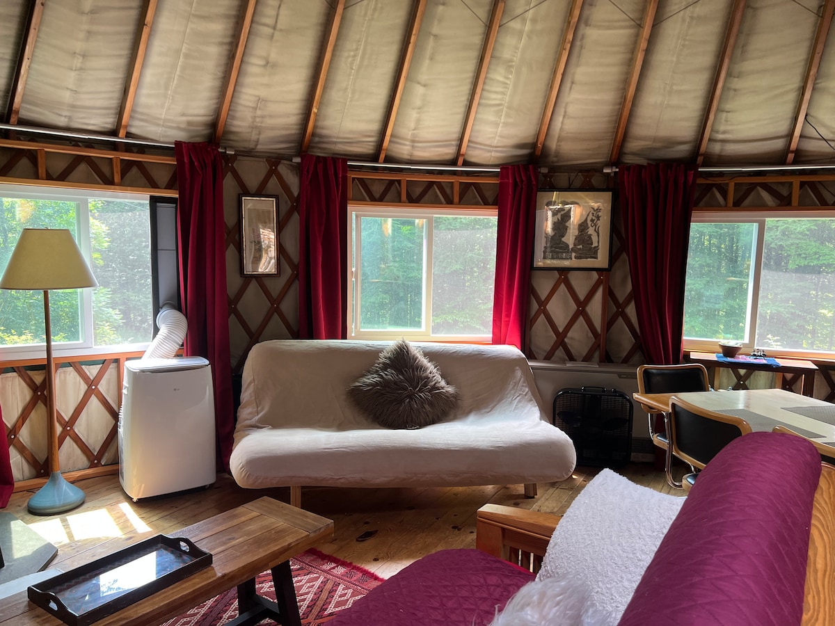 Η γιούρτα στο δάσος έχει διάμετρο 30 πόδια - 700 ευρύχωρα τετραγωνικά πόδια. Περιβάλλεται από δέντρα και έχει αυλή. Απαιτούνται διαμονές 2 διανυκτερεύσεων για τα Σαββατοκύριακα. Οι 6 και 12 Οκτωβρίου είναι προς το παρόν ελεύθερες αν θέλετε ένα ταξίδι με φθινοπωρινό φύλλωμα. Υπάρχει χρέωση διαμονής "μίας" διανυκτέρευσης 50 $ Επιτρέπονται 2 σκυλιά με τη συμφωνία με την πολιτική μου για τα ζώα και χρέωση 50 $ WiFi 1.000 megabit ανά δευτερόλεπτο δίκτυο οπτικών ινών Ψησταριά υγραερίου εξωτερικού χώρου, εστία φωτιάς εξωτερικού χώρου και ντους εξωτερικού χώρου διαθέσιμα από τον Μάιο έως τον Οκτώβριο