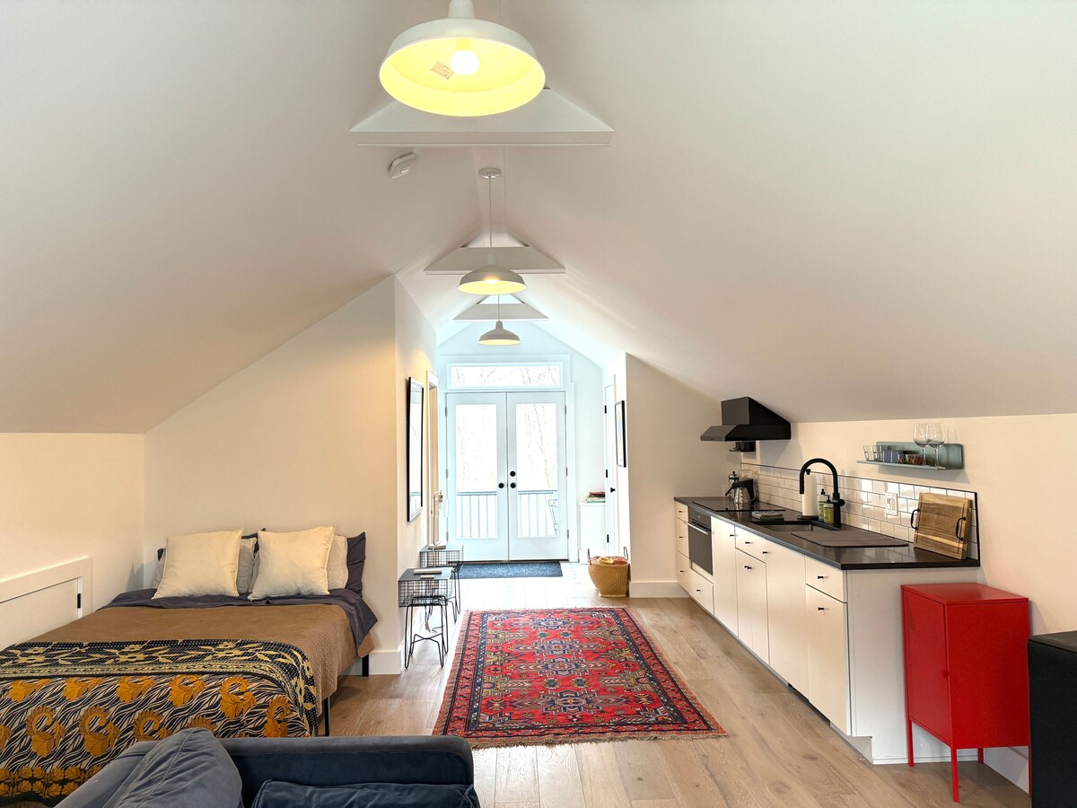 Escape to The River Loft, a private riverfront retreat in Weston, CT. Built in 2015 by a visionary local architect, The River Loft open-air design seamlessly integrates the outdoors with the interior space. As you step inside this 750 sf small home, you'll be instantly captivated by the layout that makes it feel spacious. Sitting on over 2 acres of forested land with private river access. Book now for an unforgettable experience. For more images & videos visit insta @the.riverloft