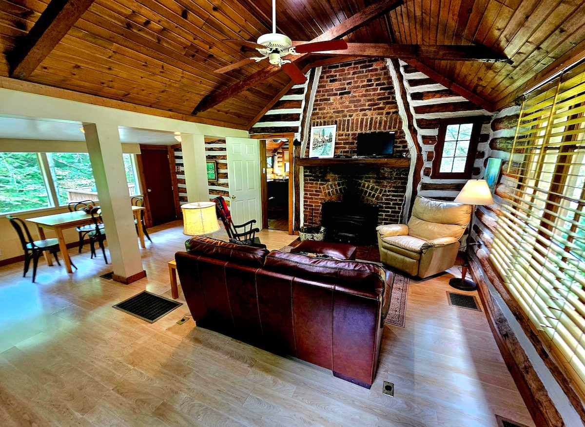 Recently renovated hand-built log cabin with amazing outdoor space. Very cozy and comfortable. A great family hangout space, indoors and out. One bedroom/loft/sofa bed. Close to Nemacolin Woodlands Resort, Frank Lloyd Wright's Falling Water, Ohiopyle, and many outdoor activities including rafting, hiking, biking, and kayaking. There's a smart TV for those rainy or cold days, as well as some games and books. A beautiful spot to simply relax, and a great base location for your next adventure.