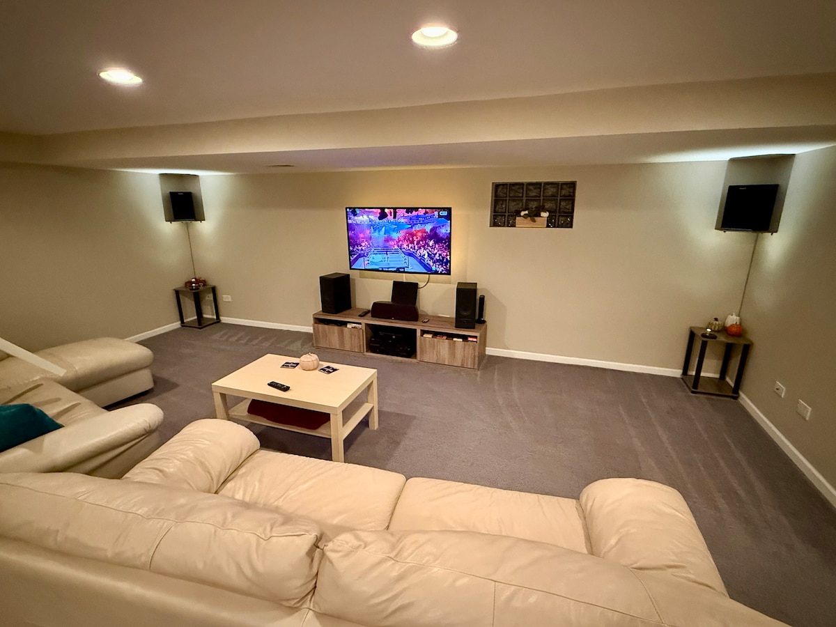 Καθαρό και καλά εξοπλισμένο κάτω επίπεδο ιδιοκατοικημένου σπιτιού με ιδιωτική πρόσβαση εισόδου/εξόδου, ξεχωριστό από το κύριο επίπεδο. Ο χώρος σε στιλ σουίτας περιλαμβάνει έναν ευρύχωρο χώρο διαβίωσης με δύο μεγάλους καναπέδες, έξυπνη τηλεόραση 49" με ηχοσύστημα, υπέρδιπλο κρεβάτι, πλήρες μπάνιο, μικρή κουζίνα με τραπέζι, πλυντήριο/στεγνωτήριο και γραφείο εργασίας. Εξαιρετική τοποθεσία 5-10 λεπτά από το O'Hare, το Allstate Arena, το Rosemont και το Rivers Casino με άφθονες επιλογές μεταφοράς. Η ιδιοκτησία βρίσκεται σε μικρή απόσταση με τα πόδια από παντοπωλεία, γυμναστήριο, πάρκα και άλλα.