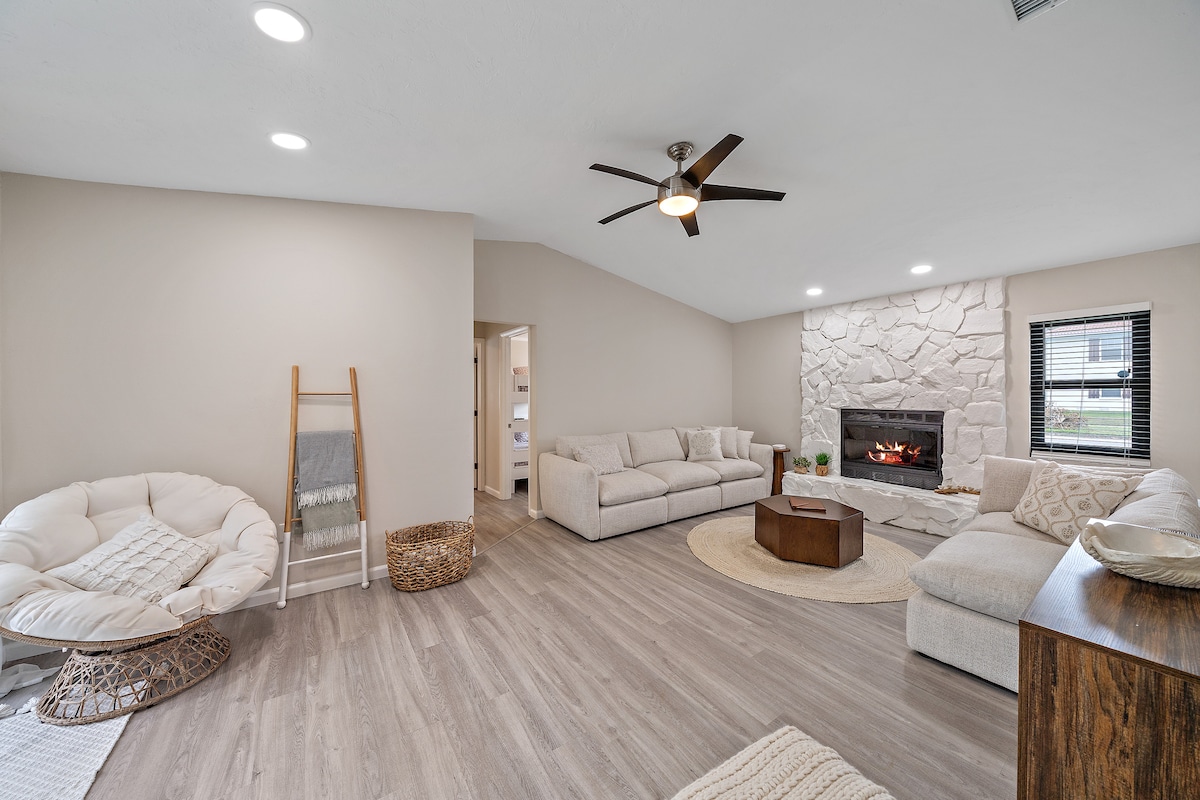 Ετοιμαστείτε για ασταμάτητη διασκέδαση στο Paradise Island, ένα καταφύγιο γεμάτο ανέσεις στη Sarasota! Είτε βρίσκεστε στην θερμαινόμενη πισίνα ή στο τζακούζι, παίζετε μίνι γκολφ, απολαμβάνετε μια οικογενειακή βραδιά παιχνιδιού, χαλαρώνετε δίπλα στη φωτιά ή κάνετε μπάρμπεκιου στην πίσω αυλή, υπάρχει κάτι εδώ για όλους. Αυτό το ζωντανό σπίτι με 4 υπνοδωμάτια και 2 μπάνια φιλοξενεί έως 14 επισκέπτες και απέχει μόλις 5 λεπτά από το αεροδρόμιο και λίγα λεπτά με το αυτοκίνητο από παραλίες παγκόσμιας κλάσης. ΚΑΝΤΕ ΚΡΆΤΗΣΗ ΣΤΗ ΔΙΑΜΟΝΉ ΣΑΣ ΣΉΜΕΡΑ - Το απόλυτο καταφύγιο για οικογενειακή διασκέδαση και αξέχαστες αναμνήσεις