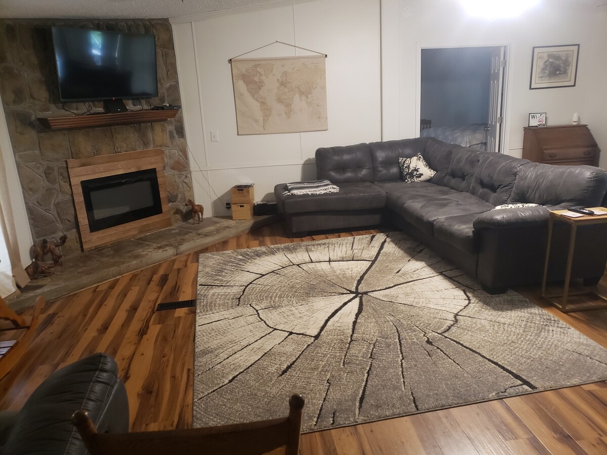 Έχουμε ένα σπίτι 2000 τετραγωνικών ποδιών που βρίσκεται σε 3 στρέμματα σε ένα πολύ εξοχικό περιβάλλον. Διαθέτει 3 υπνοδωμάτια, 2 μπάνια, το κύριο υπνοδωμάτιο έχει μεγάλο διπλό κρεβάτι, το δεύτερο υπνοδωμάτιο έχει πλήρες κρεβάτι και το τρίτο υπνοδωμάτιο έχει 2 μονά κρεβάτια. Μεγάλο μπάνιο με μεγάλη μπανιέρα και ντους. Η ευρύχωρη κουζίνα είναι διαμορφωμένη για να μαγειρεύετε, αν θέλετε. Η πίσω βεράντα έχει θέα στο δάσος και τα χωράφια με πολλά ελάφια. Η τοποθεσία μας είναι πολύ ήσυχη και γαλήνια. Επίσης, υπάρχει ένα γκαράζ στο οποίο έχετε πρόσβαση.