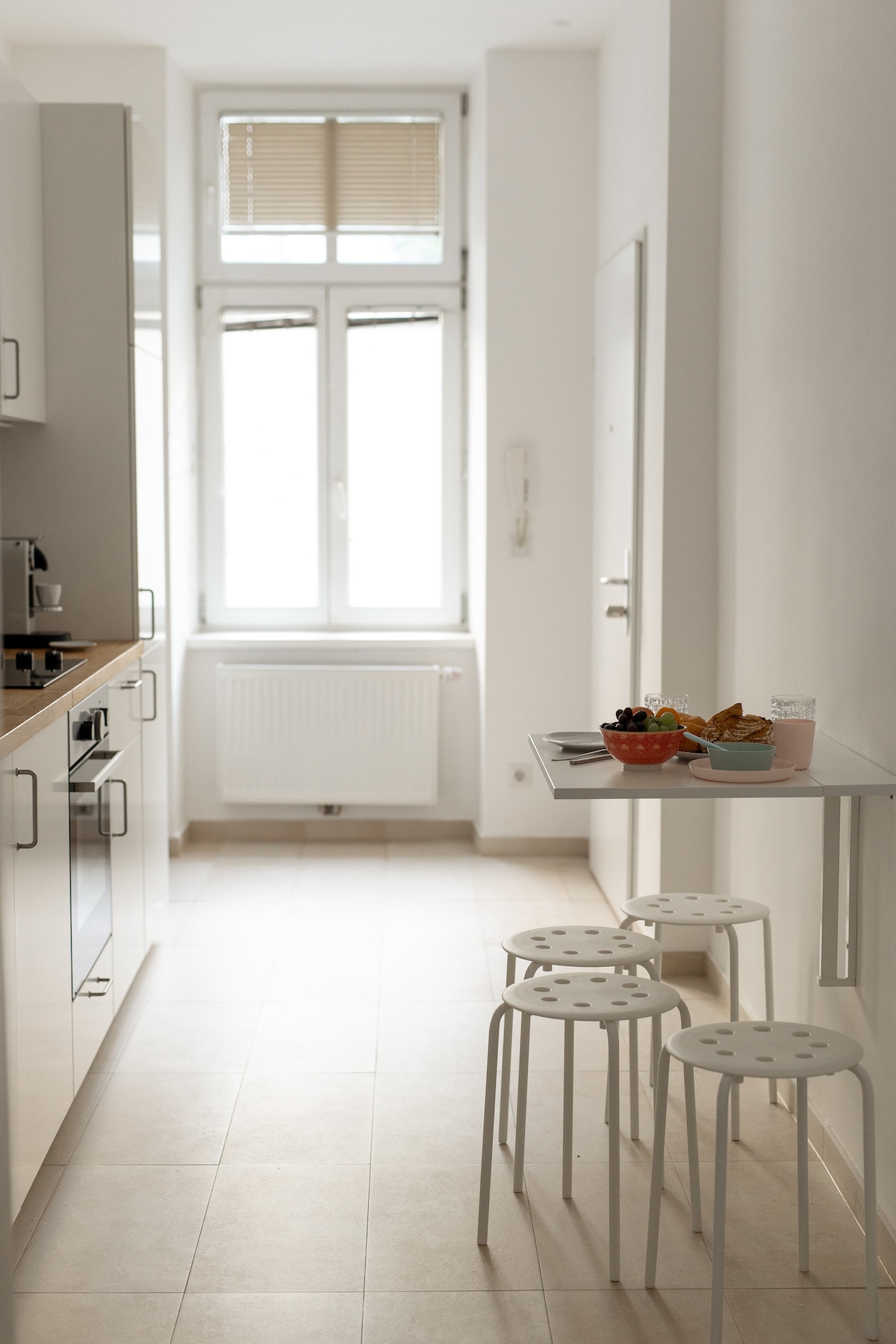 Κομψό διαμέρισμα 40 τ.μ. σε ήσυχη αυλή – ιδανικό για ξεκούραστες νύχτες στη Βιέννη. Απολαύστε ένα υπέρδιπλο κρεβάτι κάτω από την κεκλιμένη οροφή, κλιματισμό, γρήγορο Wi-Fi και τηλεόραση Smart με Netflix. Η πλήρως εξοπλισμένη κουζίνα είναι ιδανική για σύντομες ή μεγαλύτερες διαμονές. Χαλαρώστε στο ιδιωτικό μπαλκόνι με θέα στην ταράτσα. Μόλις 2 λεπτά από το μετρό και περίπου 10 λεπτά από το κέντρο της πόλης. Ιδανικό για ζευγάρια, σόλο ταξιδιώτες και επαγγελματικά ταξίδια.