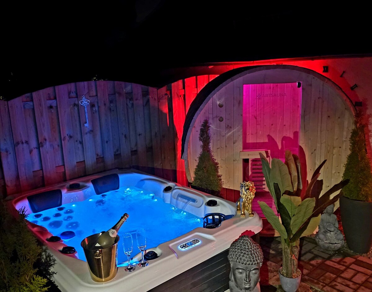 Σουίτα ευεξίας με σάουνα, τζακούζι, τηλεόραση, μπάρμπεκιου