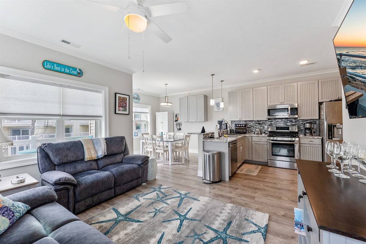Summer Sands Condo Εκτός περιόδου αιχμής /τουλάχιστον 2 διανυκτερεύσεις Εντός σεζόν/ τουλάχιστον 3 διανυκτερεύσεις. 21 Ιουνίου έως 4 Σεπτεμβρίου. Πρόσφατα ανακαινισμένο και επιπλωμένο διαμέρισμα ενός υπνοδωματίου. Θέα στον ωκεανό της παραλίας Wildwood Crest. Πάγκοι από χαλαζία, νέα πατώματα και τηλεόραση 50 ιντσών με wifi. Πλυντήριο πιάτων. Κρυστάλλινο τζάκι για να προσθέσετε ατμόσφαιρα στη μονάδα, ειδικά κατά τους χειμερινούς μήνες. Το υπνοδωμάτιο διαθέτει ένα διπλό, ένα μονό και ένα μετατρέψιμο σκαμπό, το οποίο είναι ένα μονό κρεβάτι. Το σαλόνι - καναπές-κρεβάτι queen size. Ένας χώρος στάθμευσης/ 6 άτομα