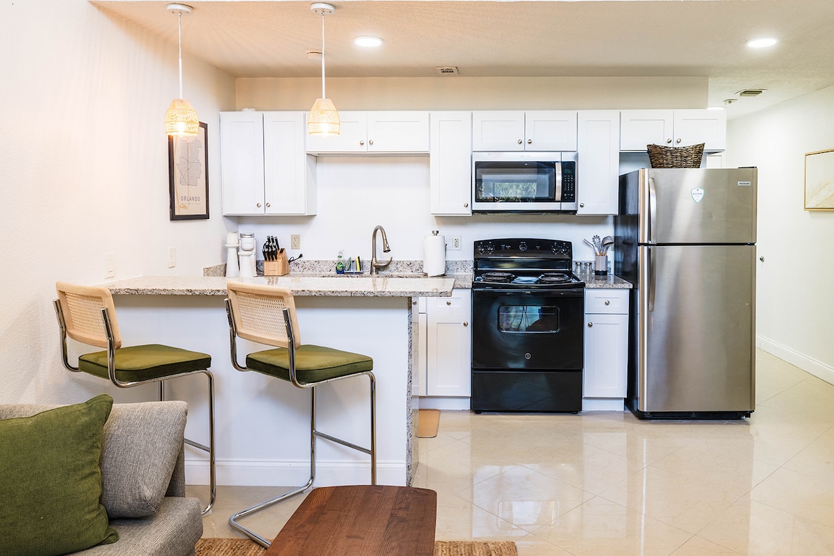 Σε βολική τοποθεσία ανάμεσα στο φιλικό προς τους λάτρεις του φαγητού Milk District και το κέντρο του Ορλάντο, αυτός ο άψογα μελετημένος χώρος διαθέτει μια ευρύχωρη σοφίτα με ανοιχτή διαρρύθμιση, ιδανική για ένα ζευγάρι ή μια μικρή ομάδα. Τα παράθυρα από το πάτωμα μέχρι το ταβάνι επιτρέπουν στο φυσικό φως να γεμίσει τον χώρο, ενώ παρέχουν πλήρη ιδιωτικότητα κατά τη διάρκεια της διαμονής σας. Τα πολυτελή εστιατόρια του Winter Park και η ζωντανή καλλιτεχνική σκηνή του Thornton Park βρίσκονται σε μικρή απόσταση με το αυτοκίνητο. Η Universal είναι μόνο 20 λεπτά μακριά, η Disney είναι 35 λεπτά, το MCO 20 λεπτά.