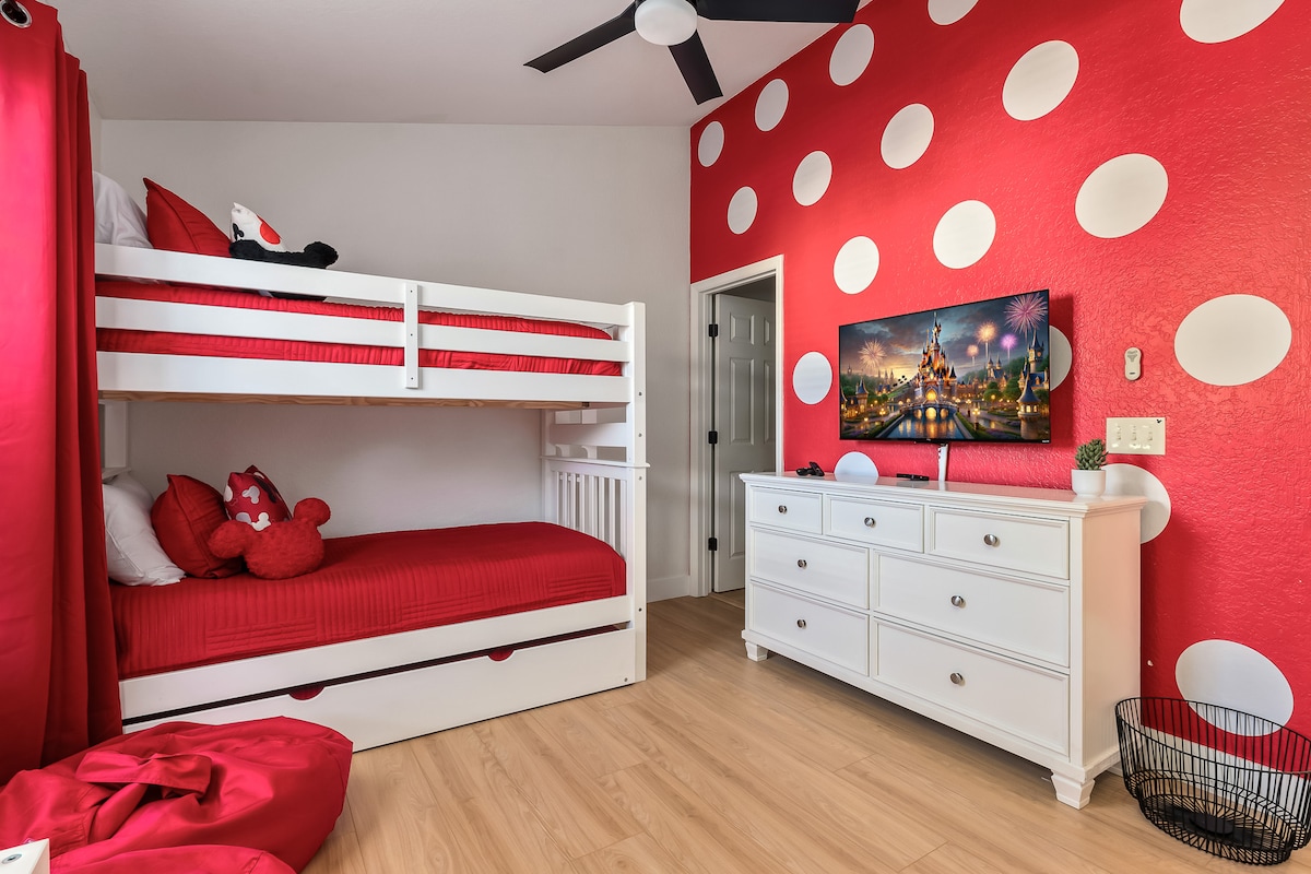 Our charming, pet-friendly home is located in the prime area of Kissimmee, Florida. Your family will be close to Disney parks, restaurants, Old Town, and Downtown Disney. Just bring your bag—we have everything you need! Settle into our fully equipped home, thoughtfully designed to create lasting memories with family and friends. Enjoy the Florida weather by cooling off in our open-air pool or grilling by the poolside lounges. Relax in our airy bedrooms, including Mickey and Minnie themed rooms!