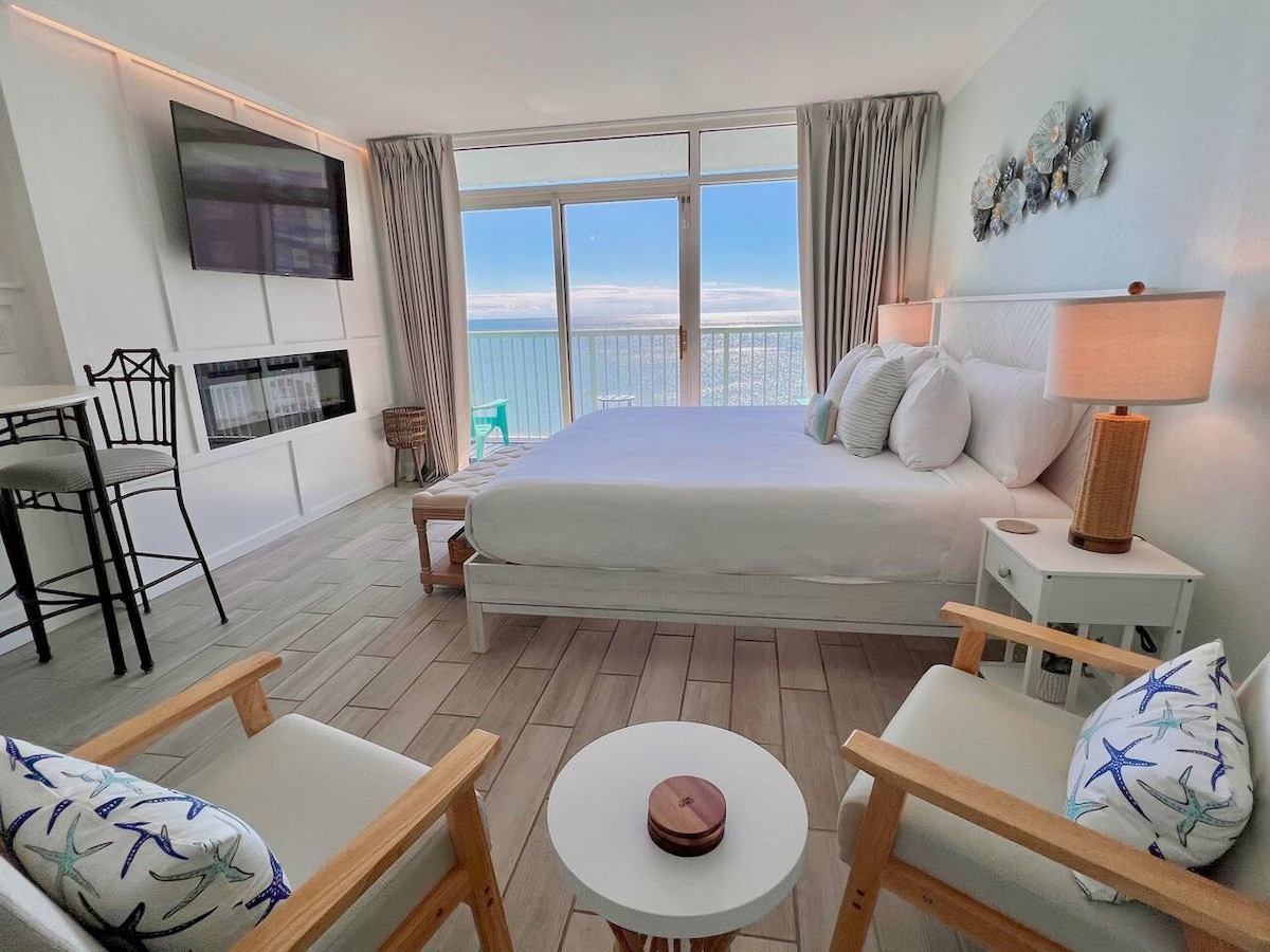 Beautiful King Ocean Front Private Condo! Perfect for a Couple's Beach Getaway! Located on the 14th floor, Private balcony, and Directly on the beach at SeaWatch Resort. All Remodeled Direct OceanFront Private Condo 🏖Steps away from the beach! -FREE Parking w/ EV availability -Access to ALL Resort Pools/Jacuzzis -2 Beach Chairs Included! -King Size Bed -Electric Fireplace -Large Smart TV -Free Wifi -Kitchen inside the Condo -Onsite Gym -Minutes away to shopping and restaurants!