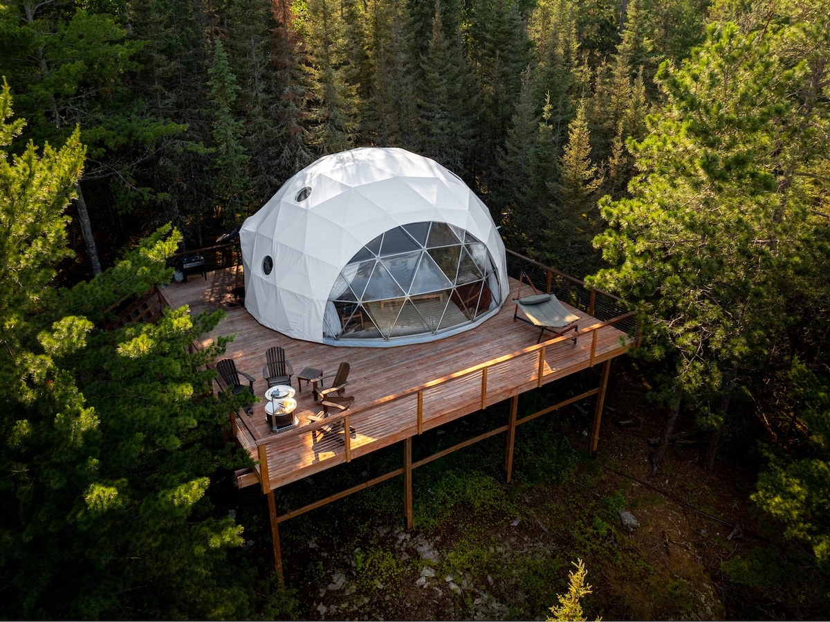 Brought to you by Voyageurs Outpost, escape to the treetops in this one-of-a-kind luxury glamping dome with private wood-fired hot tub, perched high above the forest floor with stunning views of Crane Lake. Located on the waters edge of Voyageurs National Park, this retreat offers the perfect blend of comfort, seclusion & adventure. Enjoy coffee on your private deck as the sun rises & unwind under the stars after a day of exploring the park’s waterways. PLEASE READ ALL INFO BEFORE BOOKING!