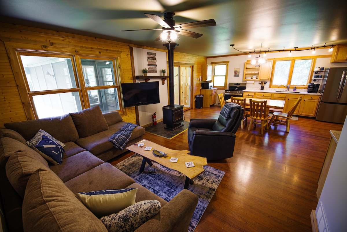 Το άνετο, χαριτωμένο ξυλόσπιτό μας έχει δύο υπνοδωμάτια. Το ένα με queen και το άλλο με full. Υπάρχει επίσης ένα κρεβάτι στο μεγάλο δωμάτιο. Χαλαρώστε σε υπέροχο δωμάτιο με ζεστή φωτιά ή στη βεράντα με ένα τραπέζι φωτιάς. Υπάρχει ψησταριά υγραερίου στο χώρο καθώς και πλήρης εξυπηρέτηση κουζίνας. Φέρτε το σκάφος ή το θαλάσσιο σκάφος σας για να το χρησιμοποιήσετε στη λίμνη Castle Rock, 1/2 μίλι μακριά Ή απολαύστε μια μέρα στα πολλά πάρκα της περιοχής. Φέρτε το όχημα χιονιού, το ATV ή το UTV σας για τα πολλά μονοπάτια ή τα κλαμπ για τα γήπεδα γκολφ!