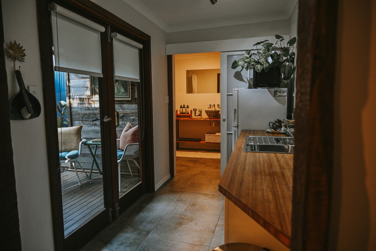 Κοιμηθείτε ήσυχα σε αυτή τη μοναδική και άνετη απόδραση στο Witchcliffe, 8 λεπτά με το αυτοκίνητο νότια του Margaret River, WA. Το στούντιο διαμέρισμα αποτελεί μέρος του όμορφου νέου ηλιακού παθητικού σχεδιασμένου σπιτιού μας στο οικολογικό χωριό. Είναι ιδιωτικό, με δική του είσοδο. Είναι άψογο στο εσωτερικό και διαθέτει 1 κρεβάτι Queen, μικρή κουζίνα, μπάνιο, καναπέ και πάγκο για φαγητό/εργασία. Το οικολογικό χωριό είναι μοναδικό στον σχεδιασμό του, εξισορροπώντας την ιδιωτικότητα και την αλληλεπίδραση. Θα χαρούμε να σας κάνουμε μια γρήγορη αυτοσχέδια περιήγηση, αν ενδιαφέρεστε.