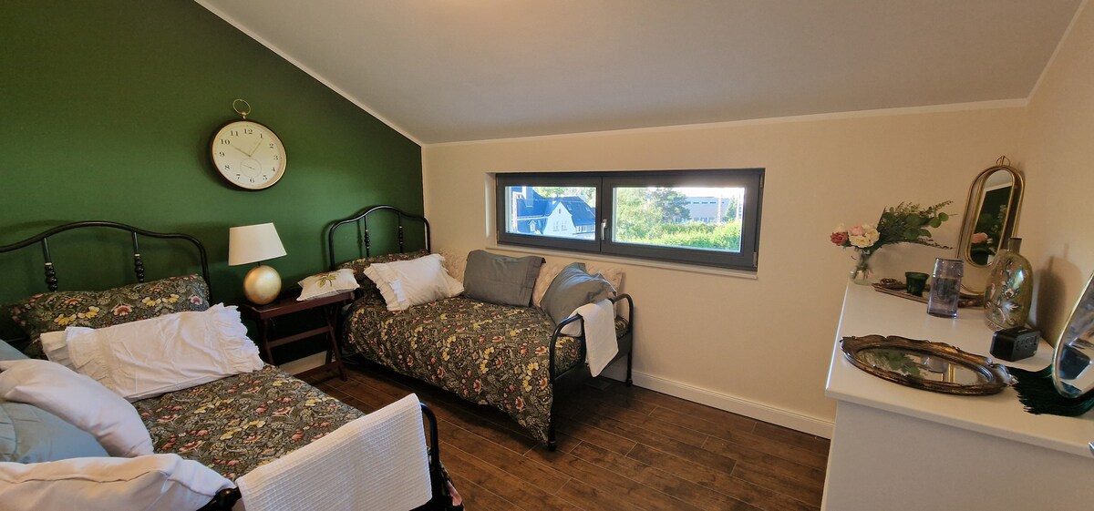 Ένα ιδιαίτερο κατάλυμα σε σοφίτα. Ένας στάβλος που έχει μετατραπεί με μεγάλη προσοχή στη λεπτομέρεια, με διπλό κρεβάτι και καναπέ-κρεβάτι για 3-4 άτομα/ζευγάρια. Ένα ευρύχωρο μπάνιο με μπανιέρα./ντους. Ανοιχτός χώρος με κουζίνα για αυτοεξυπηρέτηση. Ιδιωτικός εξωτερικός χώρος με τραπέζι και καναπέ κήπου. Παρά το γεγονός ότι το οικόπεδο μοιράζεται με ένα ιστορικό σπίτι, υπάρχει πλήρης ανεξαρτησία και ιδιωτικότητα. Ένα τέλειο καταφύγιο για τους λάτρεις της φύσης στην άκρη του δάσους. 8 λεπτά από τη λίμνη Baldeneysee. Δημόσιες συγκοινωνίες (5 λεπτά με λεωφορείο/14 λεπτά με S-Bahn)