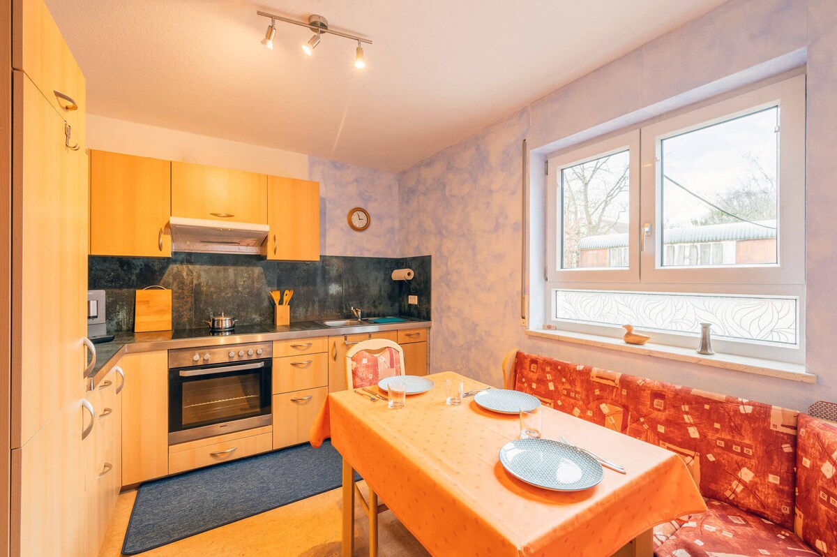 Surrounded by meadows and fields, this detached hideaway invites you to unwind. The charming family home is quietly located on the edge of a village in Upper Swabia, offering privacy and green views. Ideal for couples or small families with up to two children, as well as for relaxing stays or focused work. Thanks to direct access to the B30, Lake Constance and Ravensburg are easy to reach. A calm residential area – perfect to relax after an active day.
