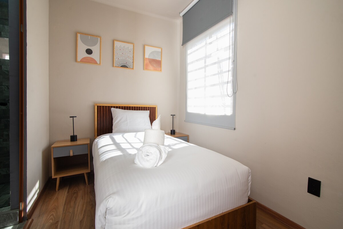 Μικρό ανεξάρτητο υπνοδωμάτιο, πλήρως επιπλωμένο και λειτουργικό, με ενσωματωμένο μπάνιο, Smart TV, Wi-Fi, διπλό κρεβάτι, θέρμανση, φούρνο μικροκυμάτων, καφετιέρα και μίνι μπαρ.Βρίσκεται στην περιοχή Colonia Condesa κοντά στο πάρκο Μεξικό, εστιατόρια, μπαρ και τουριστικά μέρη όπως το Chapultepec.Είναι ανεξάρτητο και δεν διαθέτει κουζίνα ή κοινόχρηστους χώρους, περιλαμβάνει μόνο το υπνοδωμάτιο.