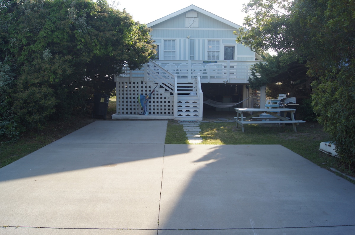 Παραθαλάσσιο σπίτι σε ιδανική τοποθεσία στο Milepost 8 στην καρδιά του Kill Devil Hills - μόλις 3 λεπτά με τα πόδια από μια δημοφιλή πρόσβαση στην παραλία. Κοντά στο Εθνικό Μνημείο των Αδελφών Ράιτ, σε προβλήτες για ψάρεμα, εστιατόρια και καταστήματα. Πλήρως εφοδιασμένο για ημέρες στην παραλία με καρέκλες, καρότσι και ομπρέλα. Απολαύστε την εξωτερική ντουζιέρα, τα τραπέζια πικνίκ, τα καθίσματα και τα ποδήλατα για εύκολη εξερεύνηση.