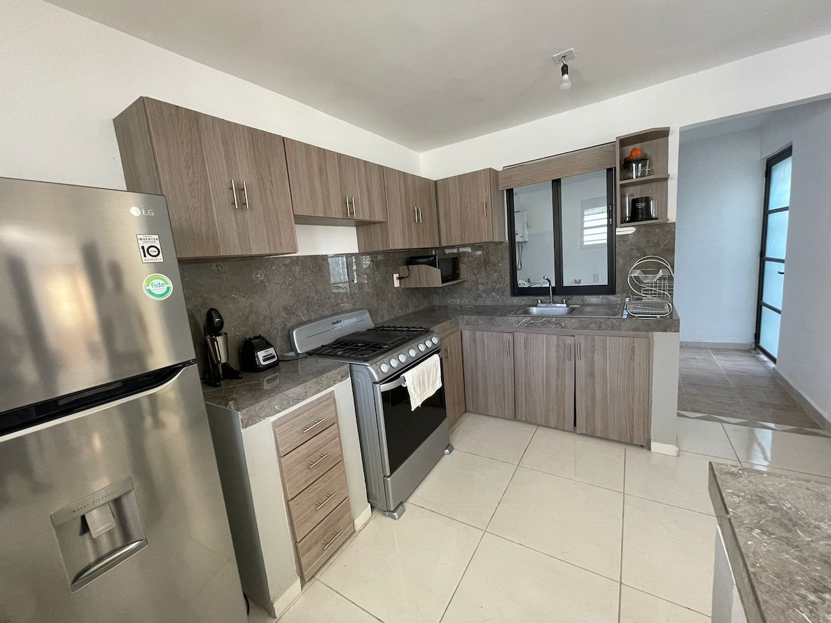 ✨ Ένας χώρος σχεδιασμένος για να σας κάνει να νιώσετε σαν στο σπίτι σας✨ Απολαύστε μια άνετη διαμονή σε αυτό το διαμέρισμα που έχει σχεδιαστεί για να σας κάνει να νιώσετε σαν στο σπίτι σας. 📌Βρίσκεται σε στρατηγική περιοχή, θα έχετε εύκολη πρόσβαση στα κύρια σημεία, τα εστιατόρια και τις υπηρεσίες της πόλης. Επιπλέον, διαθέτει κλειστό και ιδιωτικό γκαράζ 🚗, ώστε το όχημά σας να είναι ασφαλές και προστατευμένο καθ' όλη τη διάρκεια της διαμονής σας. ¡Άνεση, τοποθεσία και ηρεμία σε ένα μέρος!