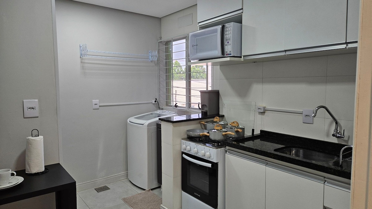 Hospede-se com conforto nesse lindo apartamento, bem mobiliado e super funcional que está localizado no Centro, a somente 3 quadras do Supermercado Brasão Avenida, 4 quadras do Ecoparque, nosso apartamento encontra-se em uma região com muitos restaurantes, bares e vida noturna. Pensado para estadias mais longas, nossa ideia é atender pessoas a trabalho que precisem de uma casa completa durante sua viagem a Chapecó. Vagas de estacionamento são muito fáceis e gratuitas no entorno do edifício.