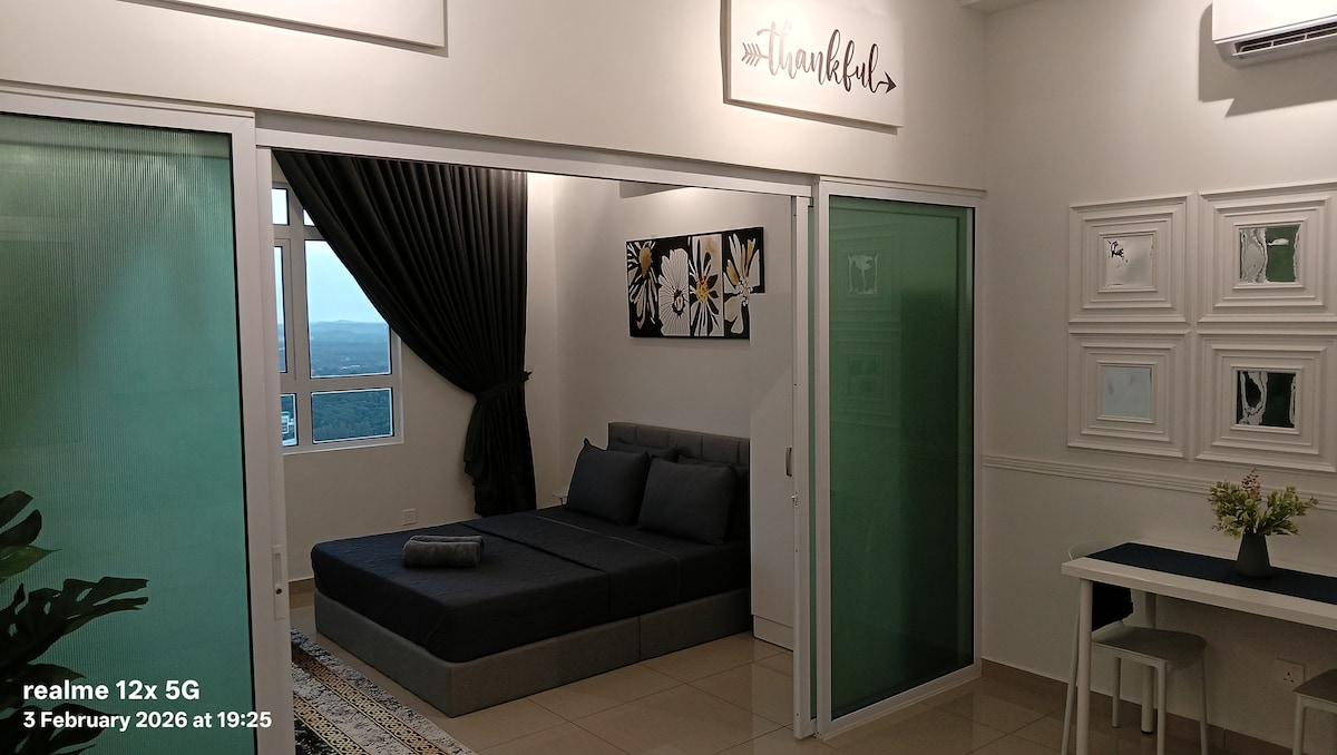 Χαλαρώστε σε αυτό το άνετο, πλήρως εξοπλισμένο, κομψό στούντιο σε ένα νέο κτίριο διαμερισμάτων κοντά στο KLIA. Δίπλα στο Mesamall με τρόφιμα, εστιατόρια, κινηματογράφο και πολλά άλλα. Απολαύστε ένα υπέρδιπλο κρεβάτι, WiFi 200Mbps, Google TV 43", μικρή κουζίνα, τραπέζια φαγητού και εργασίας - ιδανικό για ξεκούραση ή τηλεργασία. Χαλαρώστε στην πισίνα υπερχείλισης με θέα στο βουνό, διατηρηθείτε σε φόρμα στο πλήρως εξοπλισμένο γυμναστήριο ή χαλαρώστε στον χώρο της ταράτσας με εκπληκτική θέα. Ιδανικό για διαμονές μικρής ή μεγάλης διάρκειας. Ανεξάρτητα από το αν ταξιδεύετε ή εργάζεστε εξ αποστάσεως, αυτός ο χώρος θα σας κάνει να νιώσετε σαν στο σπίτι σας