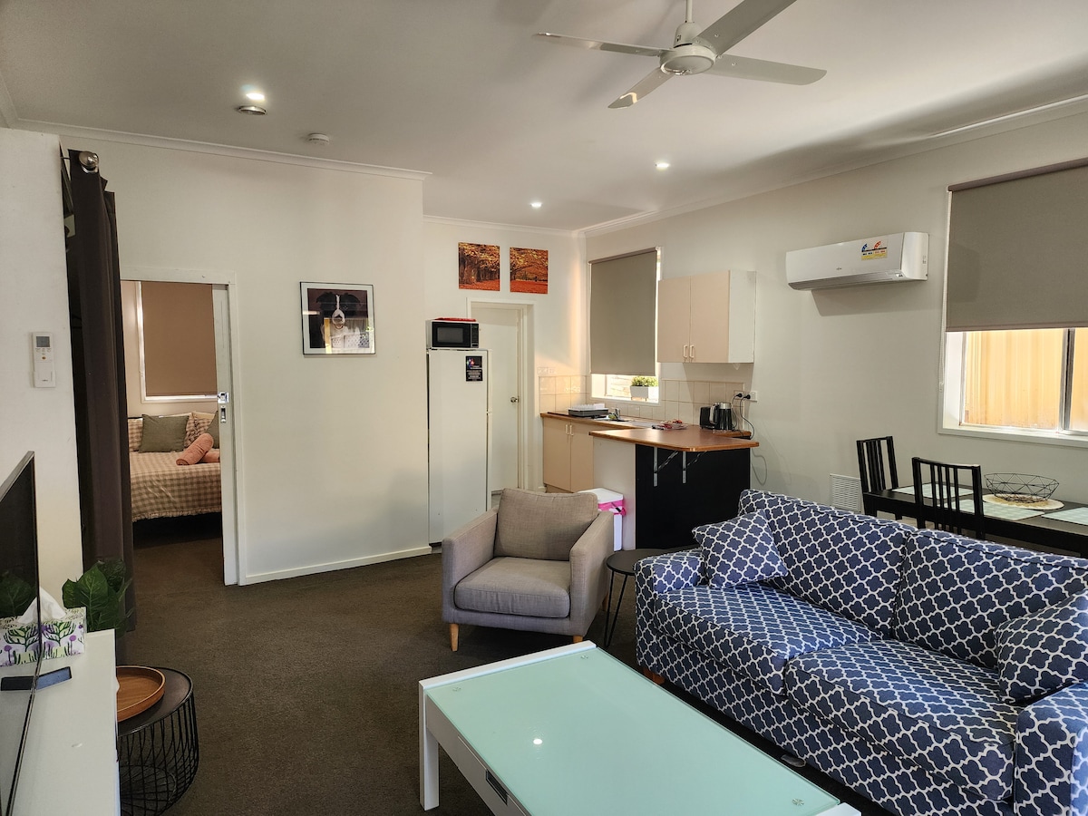 Private, self-contained guest house in quiet Latham—ideal for travelling workers or anyone needing a simple, comfortable place to crash. Fully furnished with everything you need for short or longer stays, plus easy off-street parking. Clean, practical and low-fuss, with great access to local shops and main roads. Top features: • Off-street parking • Private entry • Self-contained kitchen • Comfortable bed, and additional pull-out sofa • Air conditioning • Laundry • Quiet residential location