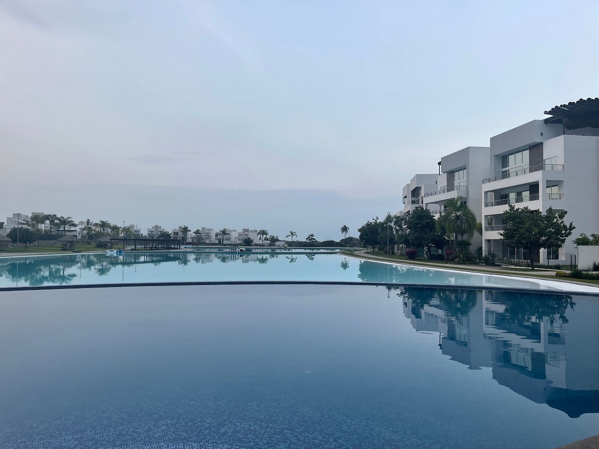 Χαλαρώστε με τον/την σύντροφο, την οικογένεια ή τους φίλους σας σε αυτό το όμορφο σπίτι με 3 υπνοδωμάτια και άμεση θέα στην πισίνα στον κοινόχρηστο χώρο. Σας προσφέρουμε: - Σαλόνι/Τραπεζαρία. - Κουζίνα με ψυγείο και φούρνο μικροκυμάτων. -Υπαίθριο δωμάτιο - Κλιματιζόμενο τζακούζι. -Κλιματιστικό Τρία ευρύχωρα υπνοδωμάτια. -3 πλήρη μπάνια -Alberca και ψησταριά σε κοινόχρηστο χώρο. - Χώροι για προπόνηση και περπάτημα χωρίς κίνδυνο. -Καθημένοι με φαγητό, παντοπωλεία πολύ κοντά χάρη στην τέλεια τοποθεσία του. - Πρόσβαση στο Club House