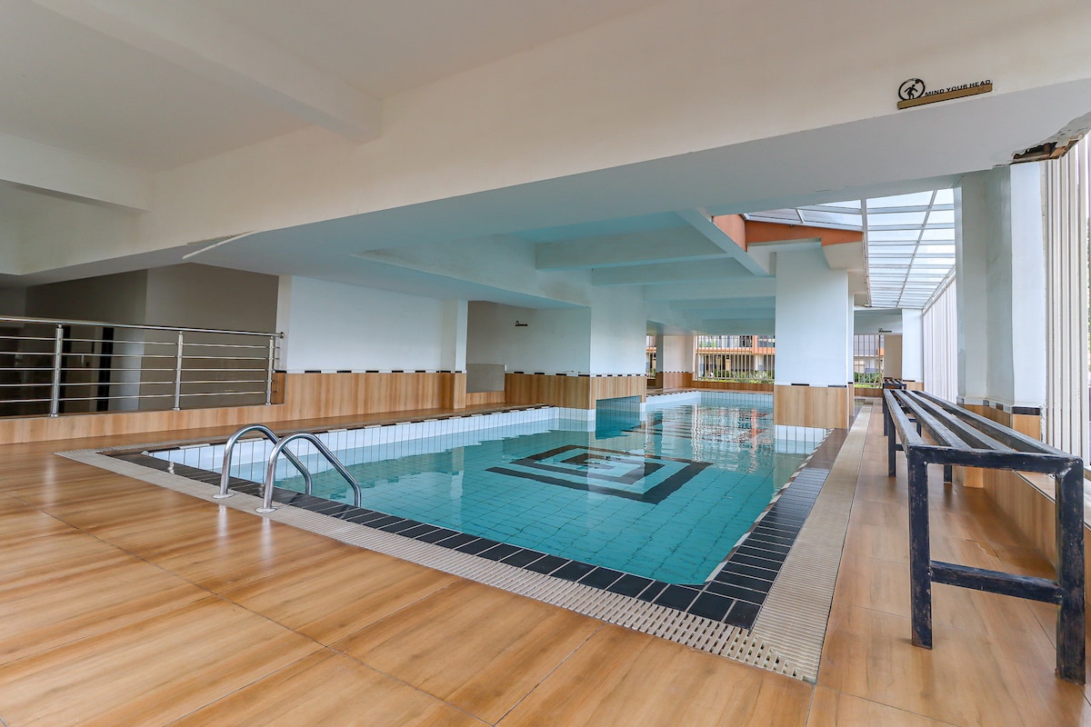 Απολαύστε μοντέρνο τρόπο ζωής σε αυτό το 1 υπνοδωμάτιο με ένα δεύτερο μικρό υπνοδωμάτιο (μετατρεπόμενο γραφείο), ιδανικό για έως 3 επισκέπτες (2 άτομα). Επιπλωμένο για άνεση και ευκολία για μακροπρόθεσμες διαμονές στο Ναϊρόμπι. 1. Το κύριο υπνοδωμάτιο διαθέτει ένα υπέρδιπλο κρεβάτι και εντοιχισμένες ντουλάπες. 2. Το δεύτερο υπνοδωμάτιο διαθέτει ένα μονό κρεβάτι και συρταριέρα για αποθήκευση. Υψηλής ταχύτητας ίντερνετ, 50" Google TV, πλυντήριο, πλήρης μικρή κουζίνα, τραπεζαρία, γυμναστήριο. Εφεδρική γεννήτρια, δωρεάν πάρκινγκ. Κοντά στα νοσοκομεία Upperhill, Coptic & KNH, σε πρεσβείες, στην περιοχή CBD & σε ένα γήπεδο γκολφ.