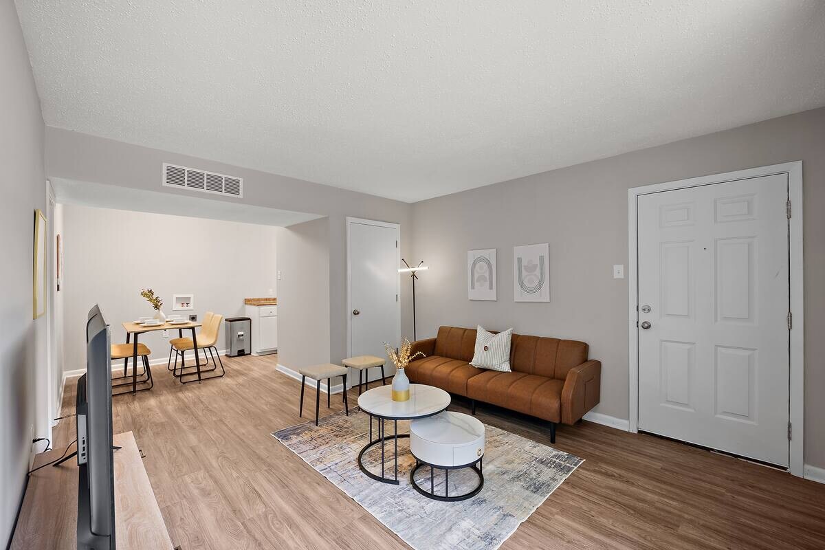 This newly renovated apartment is ideally located just 10 minutes from Amazon job sites, making it a fantastic choice for construction workers or business travelers. Step inside to discover a spacious living area filled with brand-new furnishings, designed for both comfort and style. Whether you're relaxing after a long day or getting some work done, you’ll find the space inviting and functional.