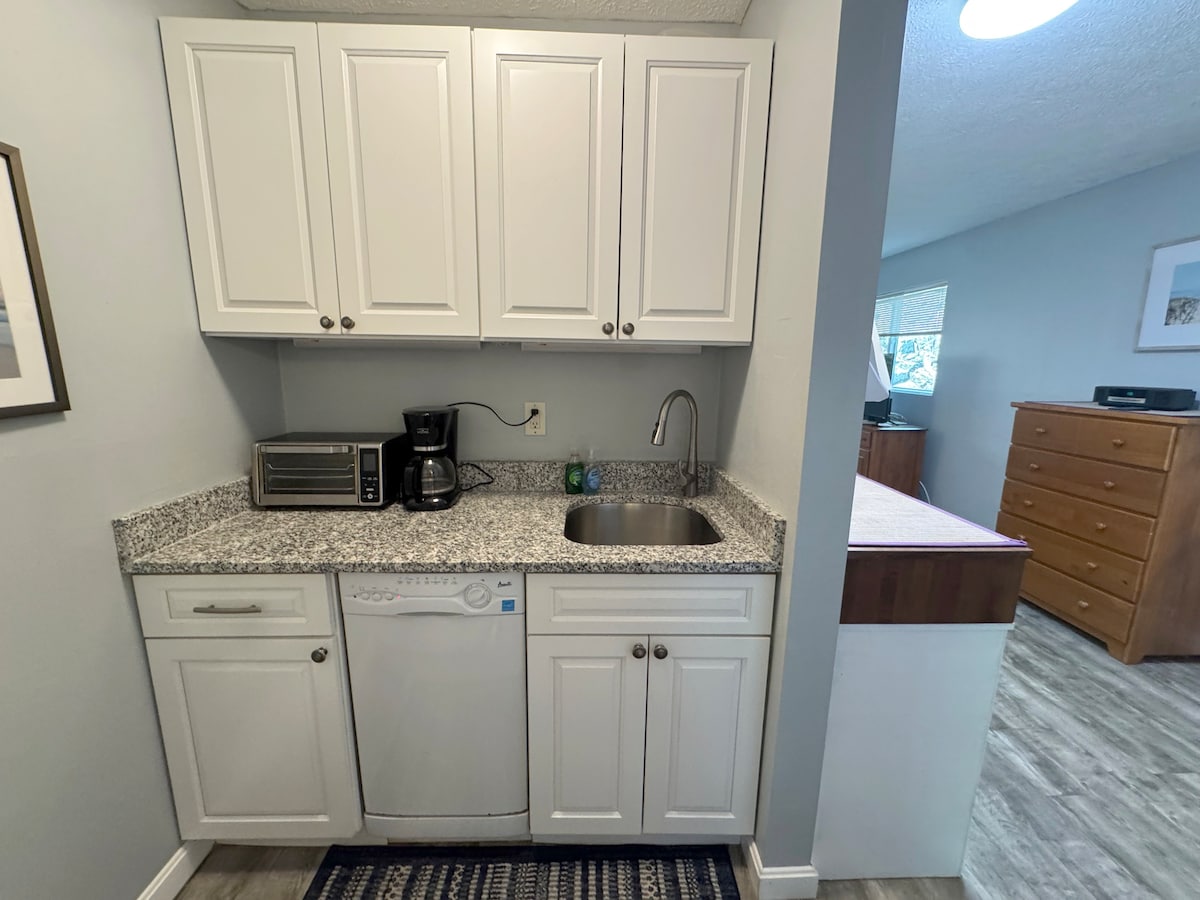 This bright, airy 2nd-floor studio condo sits in a peaceful Cape Neddick setting (on the Ogunquit line), just a 5-minute walk to Perkins Cove. The cozy unit features a separate kitchenette (sink, mini fridge, microwave, convection toaster oven, induction cooktop), a combined sitting/sleeping area, and bathroom with stand-up shower. A Keurig coffee maker is provided for your convenience. We supply a couple of K-Cups to get you started—please bring your favorites to enjoy during your stay!