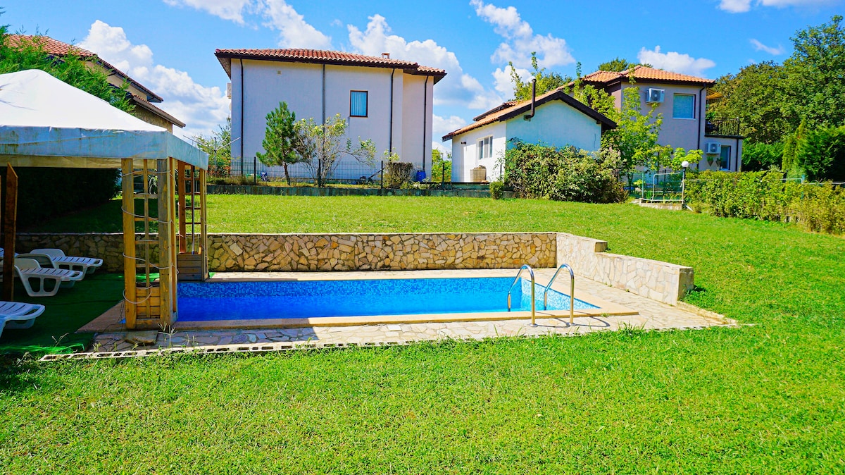 Η γοητευτική βίλα μας βρίσκεται σε ένα γραφικό χωριό του Aleksandrovo, σε απόσταση αναπνοής από τη Μαύρη Θάλασσα. Αυτό το εξοχικό σπίτι είναι ιδανικό για οικογένειες που αναζητούν ένα ήσυχο καταφύγιο μέσα στην όμορφη φύση. Η βίλα διαθέτει 2 όμορφα διακοσμημένα υπνοδωμάτια. Κάθε υπνοδωμάτιο συμπληρώνεται από το δικό του ιδιωτικό μπάνιο. Υπάρχει ευρύχωρη κουζίνα και σαλόνι πλήρως εξοπλισμένα με όλα τα απαραίτητα για το μαγείρεμα και την τραπεζαρία. Υπάρχει πισίνα, κήπος με πέργκολα και χώρος στάθμευσης.