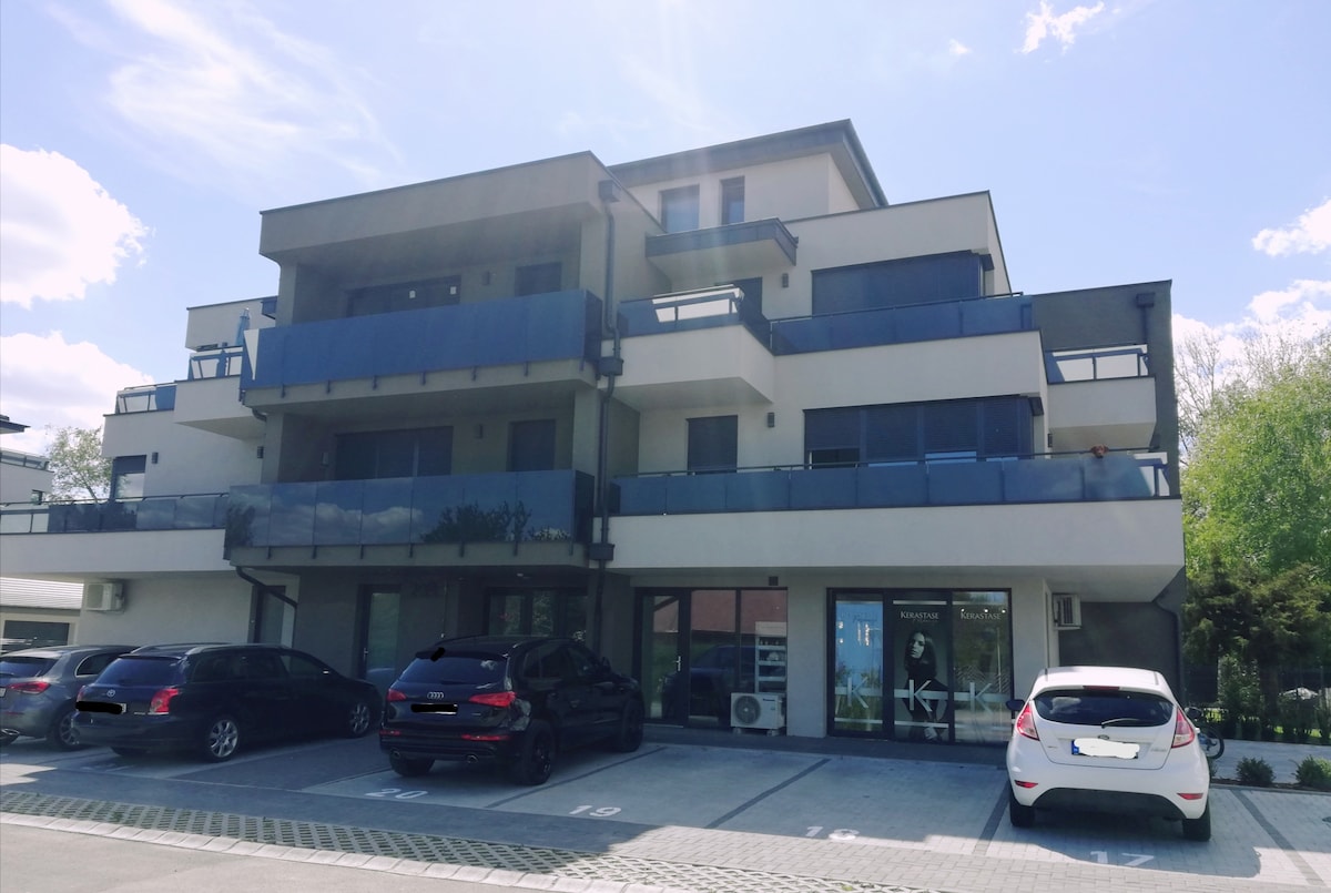 Το διαμέρισμά μας με δύο δωμάτια και μπαλκόνι βρίσκεται λίγα λεπτά από το κέντρο της πόλης, αλλά στον πρώτο όροφο της πολυκατοικίας σε μια ήσυχη τοποθεσία (χωρίς ασανσέρ). Υπάρχει μια κάμερα ασφαλείας που παρακολουθεί την είσοδό του από έξω. Υπάρχει δωρεάν πάρκινγκ μπροστά από το σπίτι, αλλά είναι επίσης εύκολα προσβάσιμο με τα μέσα μαζικής μεταφοράς. Υπάρχουν εστιατόρια σε κοντινή απόσταση και το γειτονικό πάρκο διαθέτει αθλητικές εγκαταστάσεις και παιδική χαρά για εσάς και τα παιδιά σας.