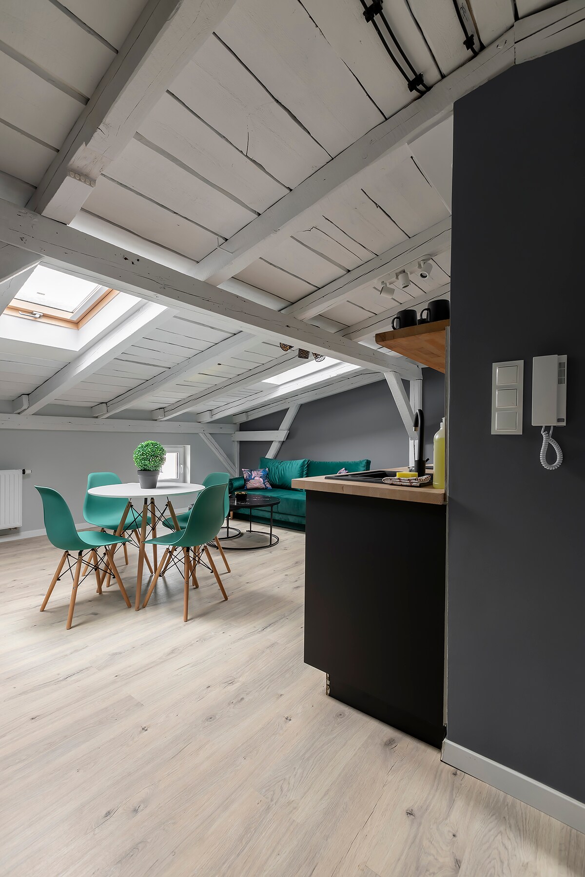Ένα νέο στούντιο με μπαλκόνι και ημιώροφο σε ένα αναζωογονημένο αρχοντικό στο κέντρο της πόλης, ακριβώς δίπλα στο Πανεπιστήμιο Τεχνών. Λίγα λεπτά από την Πλατεία της Παλιάς Αγοράς. Καλή πρόσβαση με το τραμ από τον Κεντρικό Σταθμό και το αεροδρόμιο. Υπάρχει ασανσέρ στο κτίριο. Το αρχοντικό ήταν μια σκηνή εγκλήματος στο αστυνομικό μυθιστόρημα του Ryszard Chwirley, με τίτλο Είναι σαν τράπεζα.