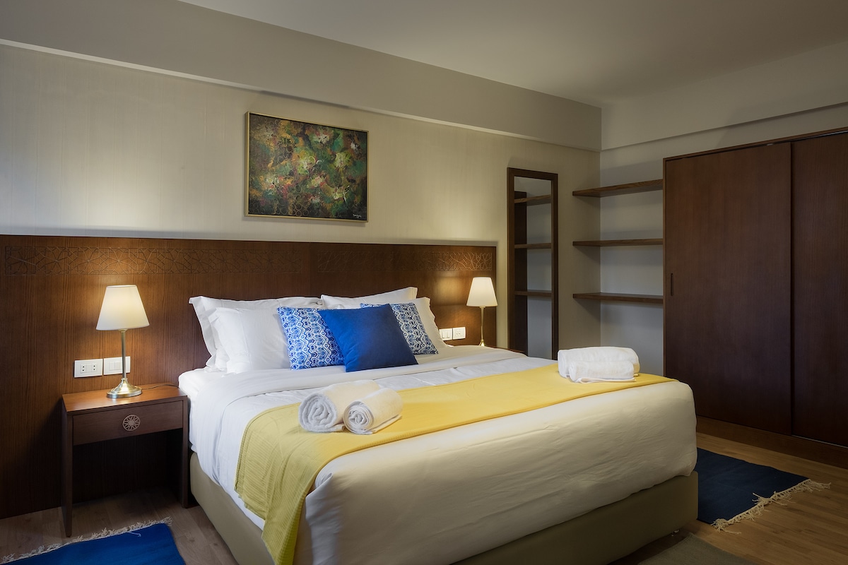 Ευρύχωρο και αβίαστα δροσερό. Αυτό το μεγάλο 1BR έχει όλα όσα χρειάζεστε για να χαλαρώσετε με στιλ. Lemon Spaces Standard: - Γρήγορο wifi. - Πρόσβαση με κάρτα-κλειδί -Επαγγελματικά καθαρισμένο - Πλήρως εξοπλισμένη κουζίνα. - Φρέσκες πετσέτες. -24/7 Υποστήριξη - Δωρεάν πακέτο καλωσορίσματος. -Κανονική καθαριότητα δύο φορές την εβδομάδα. - Άνετα κλινοσκεπάσματα. - Παροχές ντους. Παροχές κτιρίου: -Convenient Store. - Κατάστημα υποδοχής. - Κατάστημα βιβλίων. - Πισίνα. - Ασανσέρ - Μπροστινό γραφείο. - Τράπεζα & ΑΤΜ. -Καφές Σπίτι -Burger & Wings Place - Χώρος για επιδόματα.