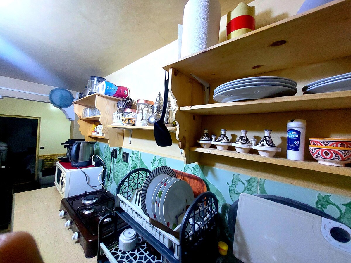 Το Δωμάτιο στην Ταράτσα (Βόρεια) βρίσκεται στο επίπεδο της ταράτσας του kasbah. Περιλαμβάνει: • Ένα διπλό κρεβάτι • Ένα μονό κρεβάτι • Κοινόχρηστο μπάνιο Μια απλή, άνετη επιλογή για τους επισκέπτες που απολαμβάνουν πρόσβαση στην ταράτσα και κοινόχρηστες εγκαταστάσεις ενώ μένουν μέσα στην ιστορική kasbah. Ενημερώστε μας εκ των προτέρων αν θέλετε να σας ετοιμάσουμε γεύματα κατά τη διάρκεια της διαμονής σας: • Δείπνο: 12 € ανά άτομο • Πρωινό: 5 € ανά άτομο • Δείπνο και πρωινό: 15 € ανά άτομο