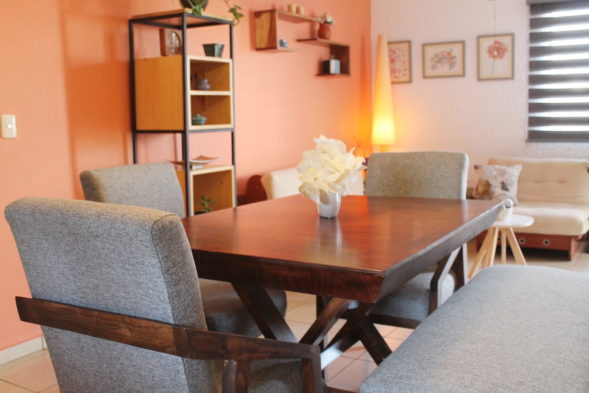 Άνετο και μοντέρνο στο ισόγειο με εξαιρετική τοποθεσία κοντά στην Plaza del Sol και την Expo Guadalajara. Απέχει μόλις λίγα τετράγωνα από τις λεωφόρους López Mateos και Mariano Otero. Πολύ άνετο και διακοσμημένο με πολύ στυλ, έπιπλα, αξεσουάρ και σκεύη που έχουν επιλεγεί ειδικά για να απολαύσετε τη διαμονή σας, διαθέτει μικρή κουζίνα, όχι με φούρνο, αλλά αν το ζητήσετε μπορούμε να σας παρέχουμε μια επαγωγική σχάρα. Διαθέτει κλιματισμό για να παρέχει ένα δροσερό και ευχάριστο περιβάλλον