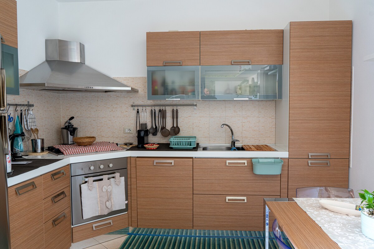 Ανεξάρτητο διαμέρισμα, πρόσφατα ανακαινισμένο και με προσεγμένες λεπτομέρειες, διαθέτει δύο μεγάλα δωμάτια με διπλό κρεβάτι και πλήρως εξοπλισμένα μπάνια, σαλόνι με τηλεόραση επίπεδης οθόνης, σύνδεση WI-FI, κουζίνα με πλυντήριο πιάτων, φούρνο και φούρνο μικροκυμάτων, πλυντήριο ρούχων, θέρμανση και κλιματισμό. Το διαμέρισμα βρίσκεται στο κέντρο της πόλης, περιτριγυρισμένο από μπαρ, εστιατόρια, καταστήματα, πλατείες και εκκλησίες και απέχει μόλις λίγα λεπτά από τις πιο όμορφες παραλίες του Sinis.