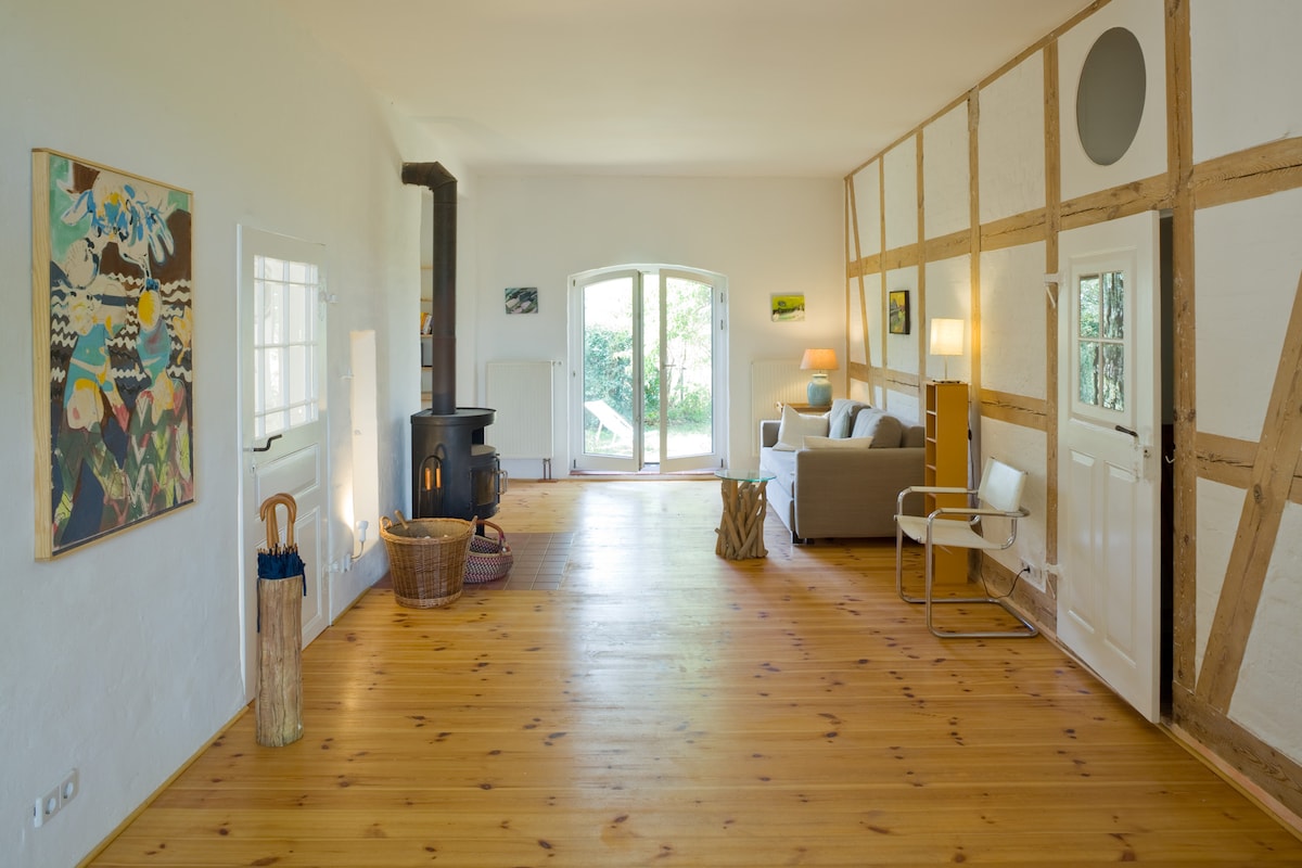 Το άνετο, κομψά επιπλωμένο διαμέρισμα, σε μια ειδυλλιακή, ήσυχη τοποθεσία του χωριού, βρίσκεται σε μια ιστορική, όμορφα ανακαινισμένη αγροικία με φυσικά υλικά και όμορφο ευρύχωρο κήπο. Απολαύστε την ηρεμία και την ομορφιά του μαγευτικού αγροτικού περιβάλλοντος. Το όμορφο τοπίο του Βρανδεμβούργου, το οποίο κατάφερε να διατηρήσει τη φυσικότητά του λόγω των πολυάριθμων λιμνών και δασών του, σας προσκαλεί να κάνετε ποδηλασία, πεζοπορία, βαρκάδα και κολύμπι.
