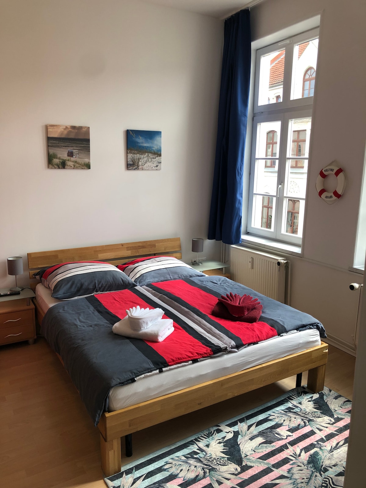 Μπορείτε να περιμένετε ένα ευρύχωρο, ωραίο δωμάτιο 50 τ.μ. με θέα στο Wismar. Τα ξύλινα δοκάρια, οι ξύλινες σανίδες δαπέδου και το ειδικό γύψο προσδίδουν σε αυτό το δωμάτιο μια ιδιαίτερη γεύση. Το σπίτι μας βρίσκεται σε μια ήσυχη, ξύλινη συνοικία με επένδυση από τούβλα, περίπου 15-20 λεπτά με τα πόδια από το κέντρο της πόλης. Θα έχετε τη δική σας τουαλέτα, νιπτήρα και ντους. Μπορείτε να έχετε ποδήλατα για ωραίες περιηγήσεις γύρω από το Wismar και το καλοκαίρι, θα παρέχουμε ένα μικρό, ηλιόλουστο σαλόνι στον κήπο!:-)
