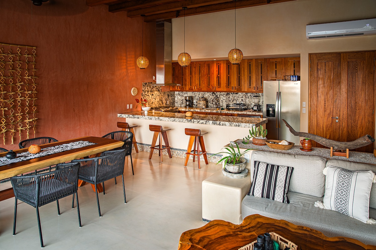 Κρυμμένο πάνω από τον λαμπερό κόλπο Zihuatanejo, το El Escondite είναι η ιδιωτική σας απόδραση - ένα πολυτελές ρετιρέ ενός υπνοδωματίου σχεδιασμένο από το εμβληματικό Zozaya Arquitectos. Σκεφτείτε τη δροσερή κομψότητα, τη θέα που κόβει την ανάσα και την αβίαστη άνεση, όλα τυλιγμένα σε τολμηρό μποέμικο στιλ. Από τη στιγμή που μπαίνετε, ο εντυπωσιακός παράγοντας είναι πραγματικός: οι ψηλά γραμμές, οι φυσικές υφές και η απρόσκοπτη ροή εσωτερικού και εξωτερικού χώρου που σας κάνει να νιώθετε σαν να ζείτε στον ουρανό.