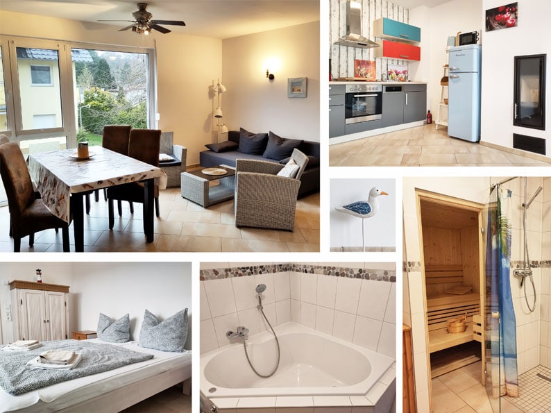 Dieses gemütliche Apartment für bis zu 3 Personen (inkl. Baby/Kind) heißt Sie herzlich willkommen! Auf Sie wartet ein gemütliches Schlafzimmer mit komfortablem Doppelbett und ein großer Wohn- und Kochbereich, der mit TV, Kamin und großem Esstisch keine Wünsche offen lässt. Die Küche ist für alle Bedürfnisse ausgestattet: Backofen, Ceran-Kochfeld, Geschirrspüler und Kühl-Gefrierkombination. Das große Bad ist mit einer Badewanne, einer Dusche und einer Sauna ausgestattet.