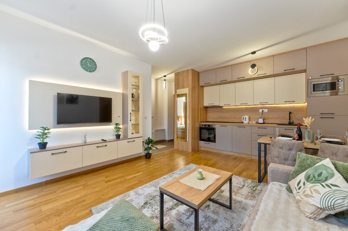 Πολυτελές μοντέρνο διαμέρισμα στην καρδιά του Ζλάτιμπορ! Βρίσκεται σε ένα ήσυχο τουριστικό συγκρότημα μόλις λίγα λεπτά με τα πόδια από το κέντρο, τη Gold Gondola, τη λίμνη και την πίστα του σκι. Ιδανική τοποθεσία για διακοπές οποιαδήποτε στιγμή του χρόνου. ◆Ασφαλής χώρος στάθμευσης γκαράζ (δωρεάν). ◆Θέα στο Tornik ◆Smart TV, κλιματιστικό, πλυντήριο + στεγνωτήριο, πλυντήριο πιάτων, καφετιέρα ◆Ευεξία & Σπα εντός του συγκροτήματος (επιπλέον χρέωση). Για πολυτέλεια χωρίς τα πλήθη, η τέλεια επιλογή για χαλάρωση. Ζλάτιμπορ - τα πάντα στα χέρια σας!